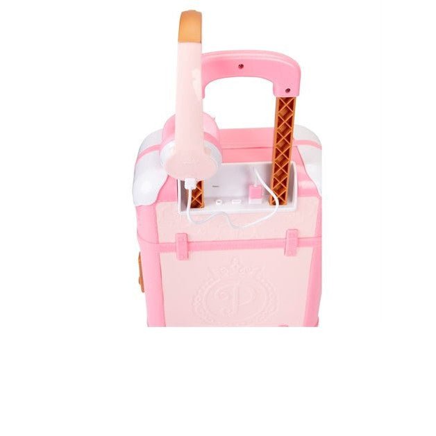 - Pretend “Plug and Play” feature includes a cord that plugs into suitcase and play tablet or headphone for a "charging" feature
