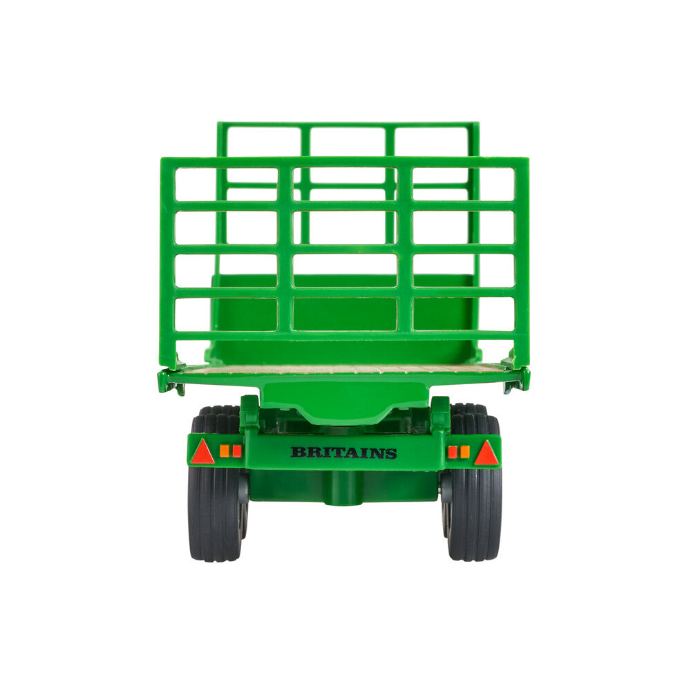 Britains has brought back the twin axle green flatbed trailer to the range. It comes with interchangeable racks you can adjust the position for your needs. The trailer will hitch to most Britains 1:32 vehicles in your collection.
