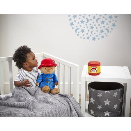 Share bedtime cuddles with Paddington Bear! Soothe your little one to sleep with music, lights and a cuddle from Paddington with the Bedtime Cuddles soft toy. Featuring the much-loved Paddington Bear in his soft red hat and blue coat, the super soft toy comes with a nightlight in the shape of a marmalade jar - Paddington's favourite! The night light plays a calming lullaby and projects colour-changing night time shapes of moons and stars. The combination of Bedtime Cuddles with Paddington soft toy and nightlight helps to create a calm and comforting environment for baby at bedtime. Easy to take where ever you go so this can help with bedtime routines on holiday too. A perfect gift for any newborn. Variable volume settings.