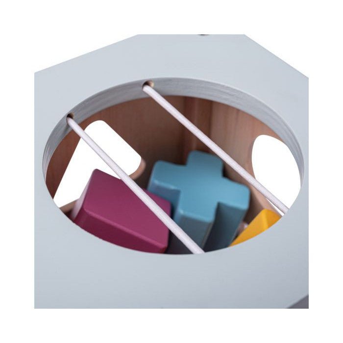 Our wooden shape sorter helps little ones to develop their dexterity and coordination skills through play. The soft colour palette makes this wooden baby toy suitable for both girls and boys.