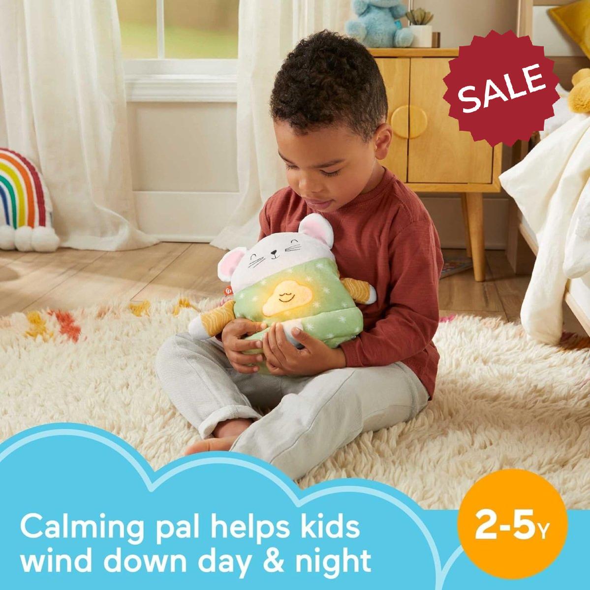 The Meditation Mouse from Fisher-Price introduces your toddler to guided meditation through physical prompts and breathing exercises to help them unwind during the day and before bedtime. This soothing plush mouse is the go-to calming cuddle buddy to help your little one learn how to nama-stay relaxed. Choose from 3 calming modes, including a daytime relaxation session, a nighttime soothing sounds mode, and a 3-part bedtime wind-down exercise. Ready for relaxing and snuggling, this plush pal has an embroidered face and is made from a variety of soft and satiny textures (including super cute pajamas!).