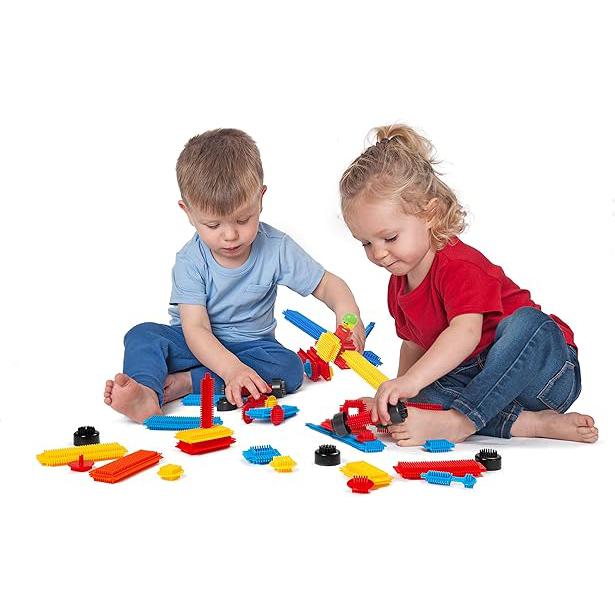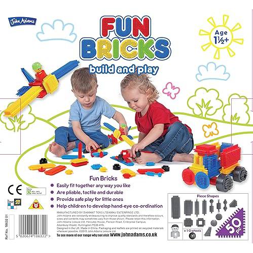 Fun Bricks is a range of building blocks for children aged 1 and a half and up. They help young children develop hand-eye co-ordination. These sturdy bricks in bright primary colours are perfect for little hands and big imaginations they easily fit together any way you like. 50 pieces Fun Bricks, which includes a range of different building blocks, with colourful characters.