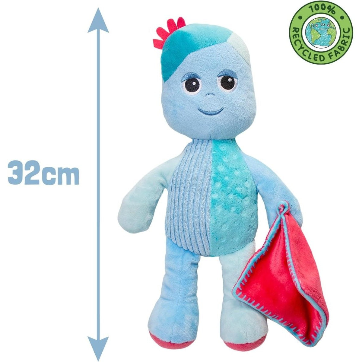 Press Igglepiggle's hand to hear the iconic In the Night Garden theme, a comforting, familiar tune that sets up the start of bedtime or time to relax. Igglepiggle also makes character sounds - it's just like he's talking to you! He's super soft and comforting with a squidgy plush body for cosy snuggles. Little ones will love the tactile jumbo cord and spot and star fabric of Igglepiggle's body. He's even carrying his own soothing red blanket, just like in the show! Igglepiggle will always be there for a soothing snuggle - replace his batteries to keep the tune and sounds playing. At 32 cm tall, Igglepiggle is the perfect size for cuddles. He's made from recycled fabric and filling and designed for little ones from birth onwards. Young pre-schoolers adore In the Night Garden and Igglepiggle is a favourite character from this much loved and trusted TV show. This talking Igglepiggle soft toy is a gentle, fun and loveable friend at bedtime or any time of day for babies and toddlers. Packed in an open presentation box, he makes a wonderful gift.