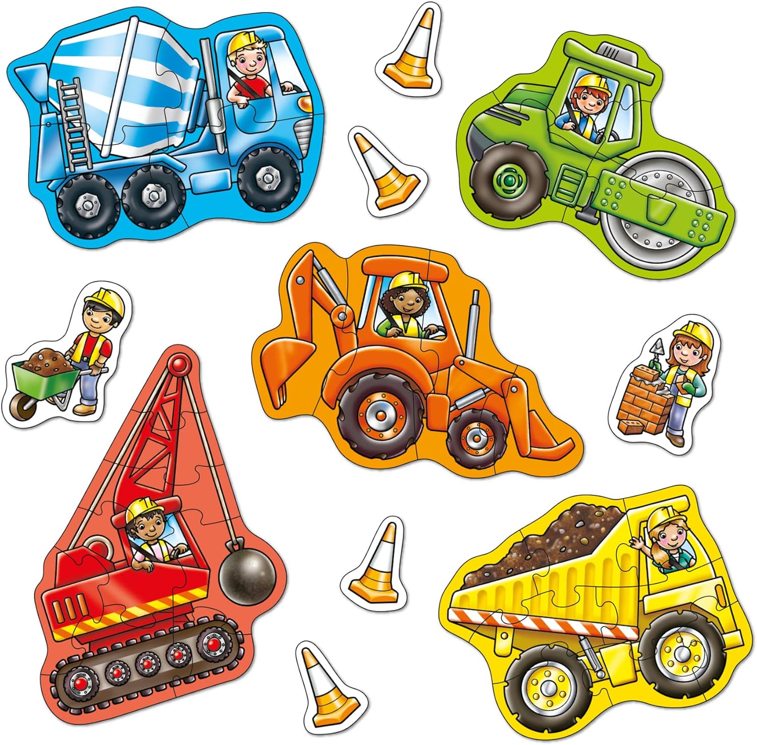 These colourful puzzles include a variety of construction themed vehicles including a cement mixer, wrecking ball, dump truck, roller and digger. The jigsaw also includes 6 extra play pieces for added value and to encourage imaginative role play.