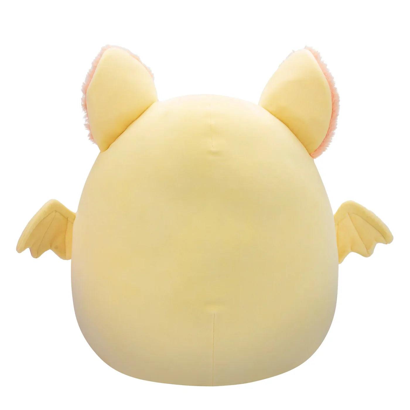 Meghan is a cream bat with triangular ears and wings on either side of her body. Her inner ears. wing membrane and fuzzy belly are peach. She has round, black eyes, a peach muzzle and a curved smile which shows two pointed, white teeth.