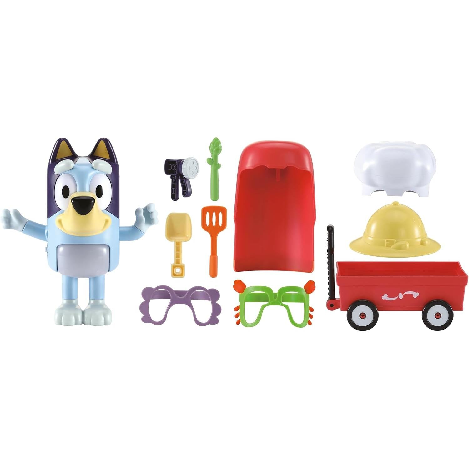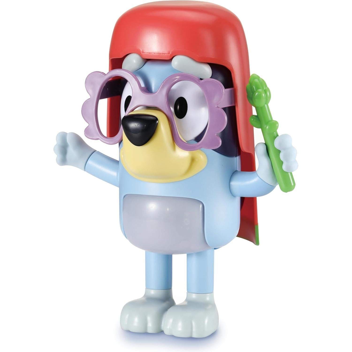 - Use the 9 accessories to transform Bluey into familiar characters from the show. Who will Bluey be today? Granny, swimmer, chef or zookeeper!