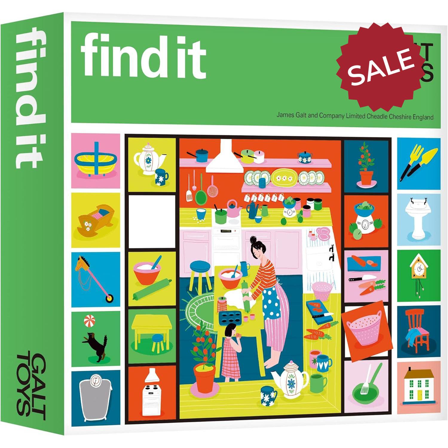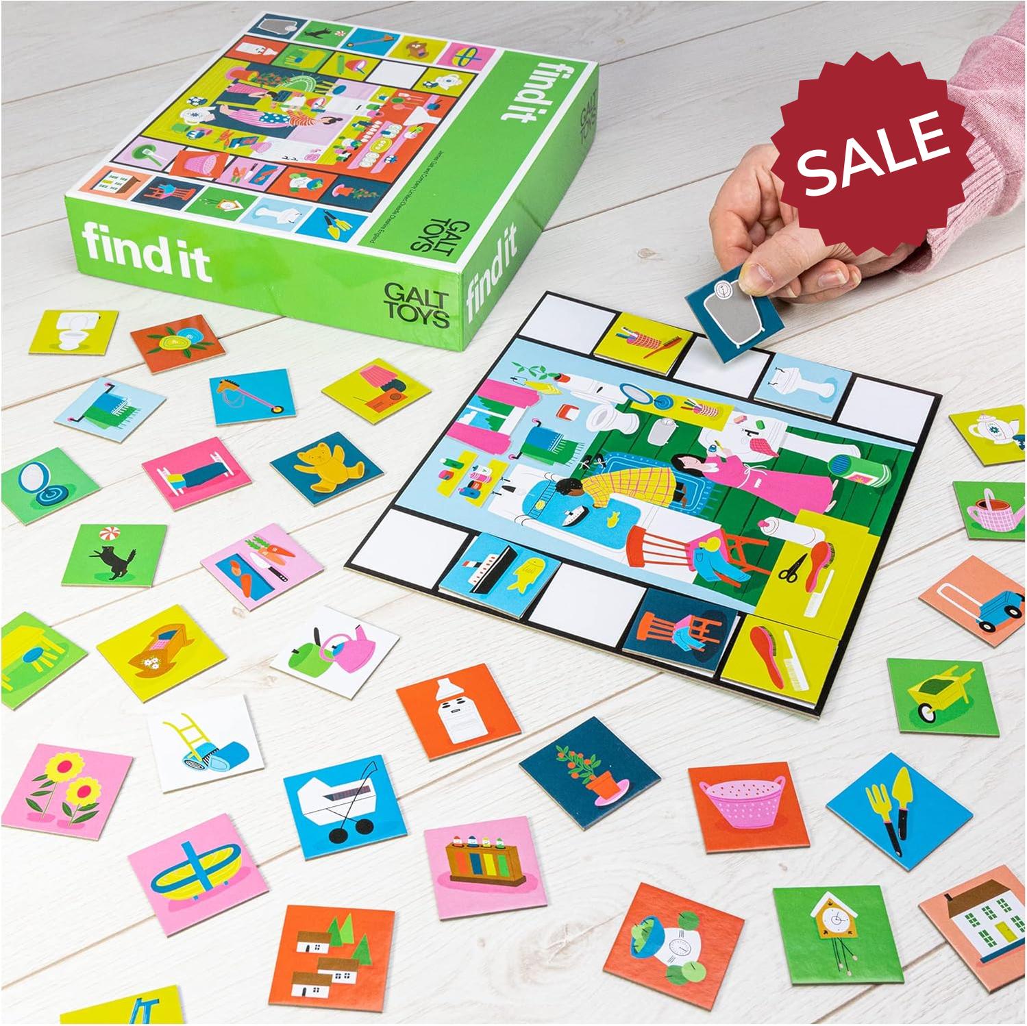 Based on the beloved Galt classic, Find It is a fun and vibrant advanced lotto game. First, a player picks up a card and describes the object they see, and then everyone must search for the matching item in the colourful scene on their playing board. Be the first player to collect all the cards that match your board to win!