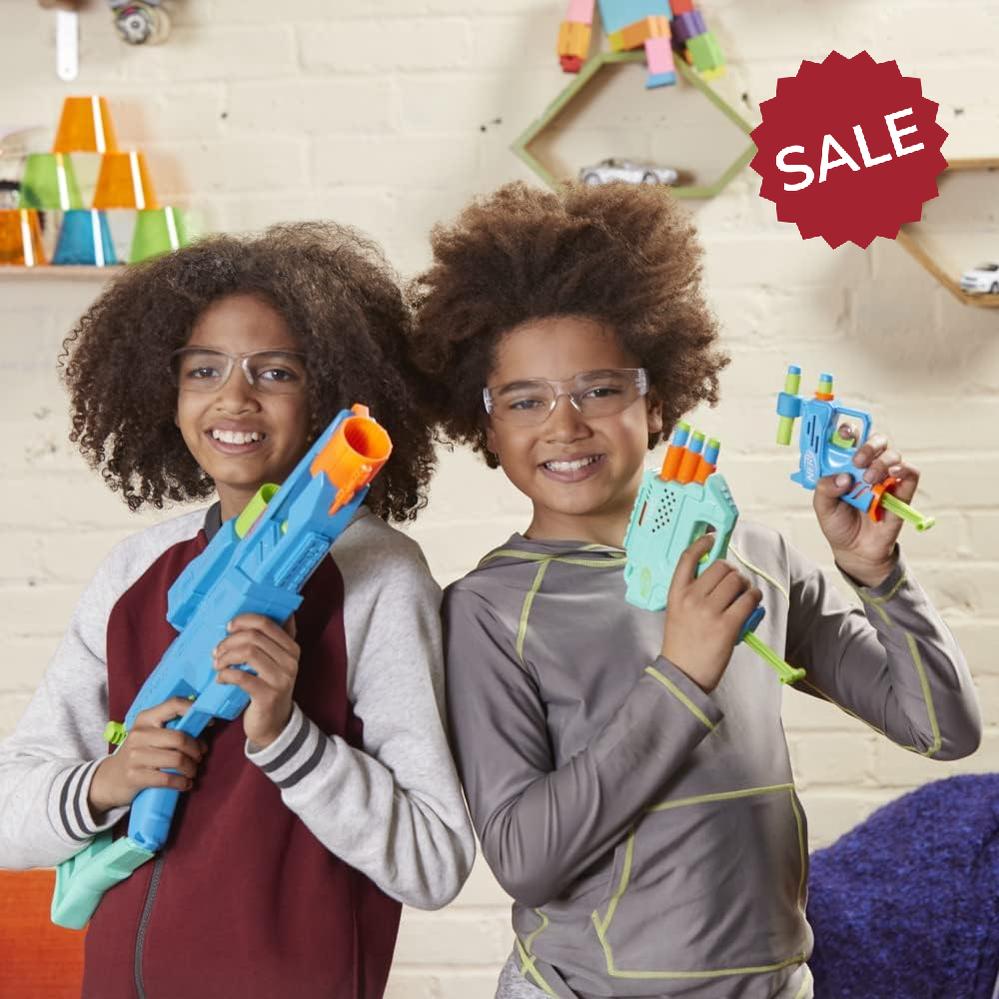 Launch into 2-barrel blasting with the Operator DB-2 blaster that fires 2 darts in a row, has a 2-dart barrel, pull-back priming handle, targeting scope, and stock. For triple-dart blasting, grab the Trio TD-3 blaster that unleashes 3 darts in a row, has 3 barrels and a tactical rail. Get ready to ace the game with the Ace SD-1 blaster that launches 1 dart, has a pull-down priming handle, and onboard 1-dart storage.