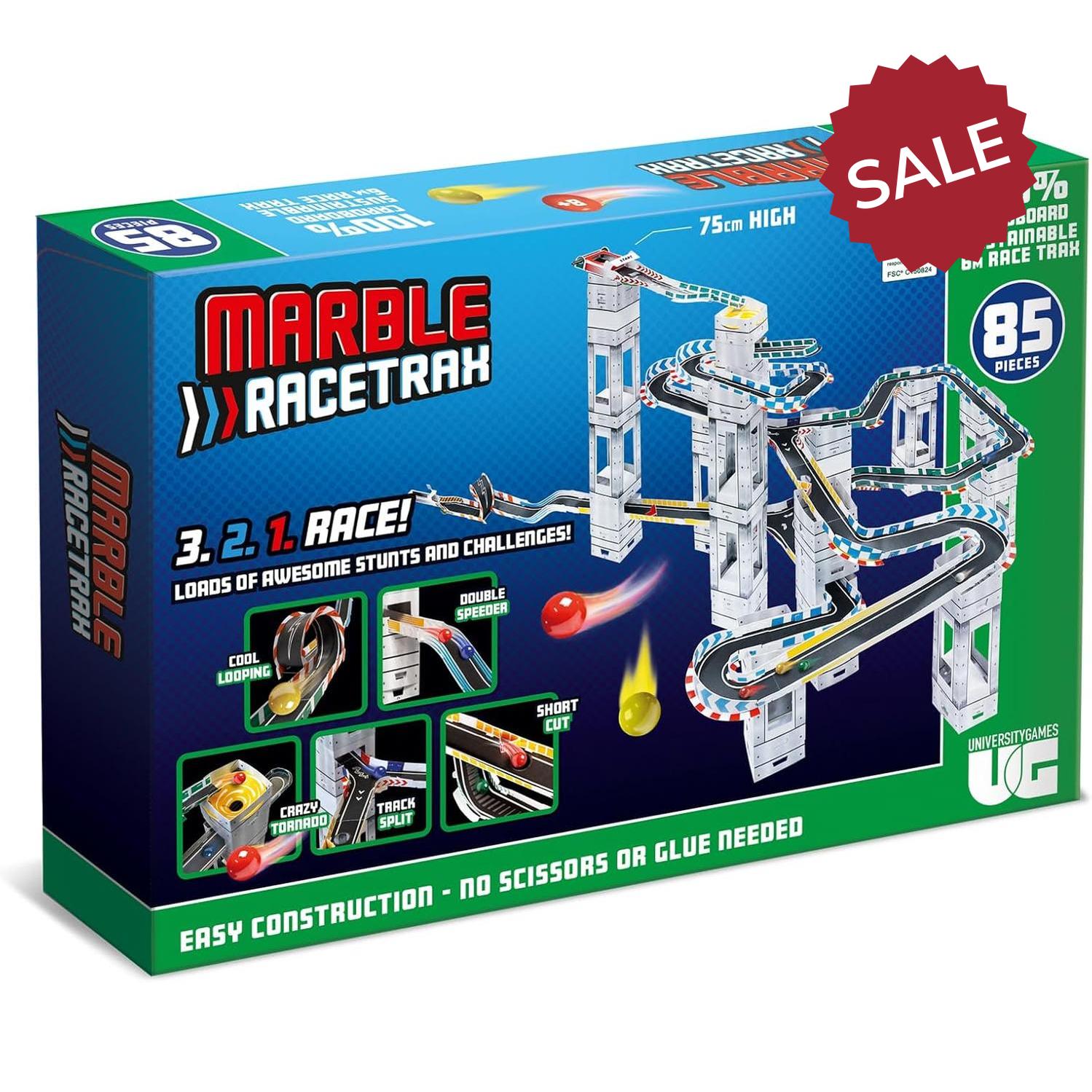 - EASY ASSEMBLY: With Marble RaceTrax, you can create thrilling marble race courses without the need for scissors or glue. The track pieces are designed to fit together seamlessly, making assembly a breeze. Simply connect the track sections to construct the course in no time.