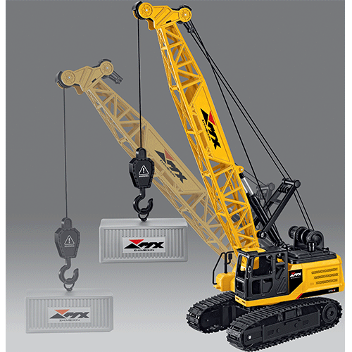 Realistic lifelike construction machinery. Fine details, with full functions, working parts and rechargeable battery pack.