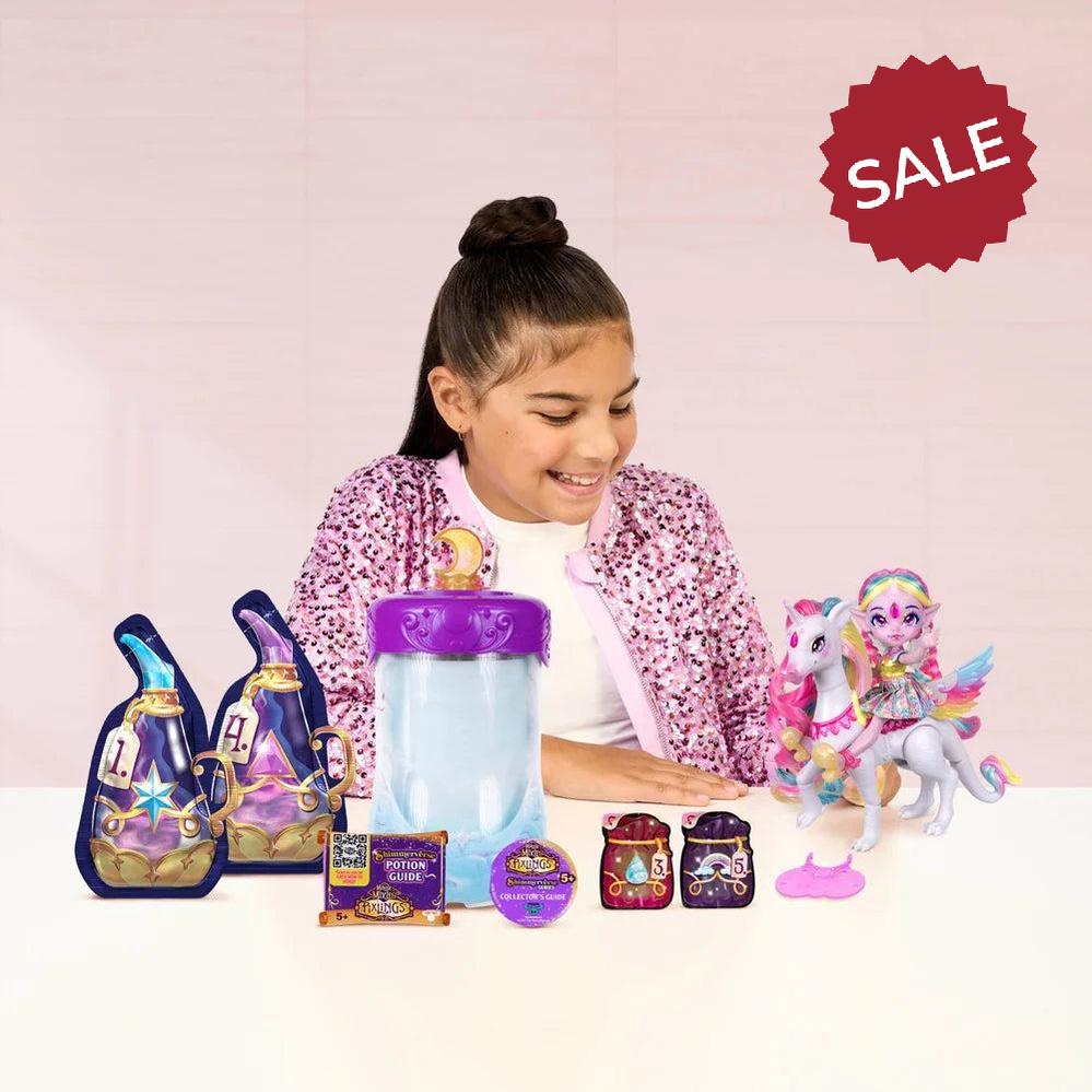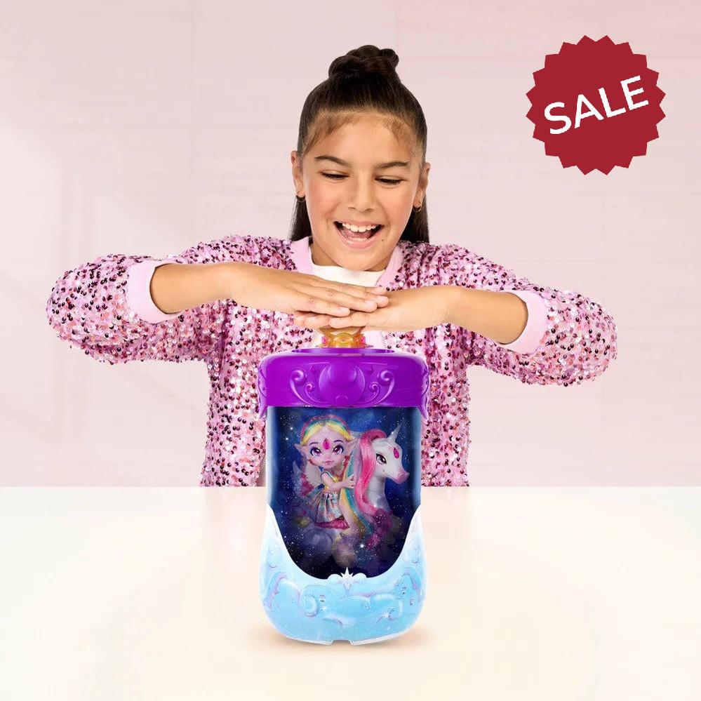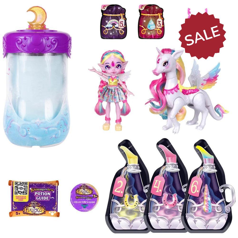Magical adventures await in the Shimmerverse, with the Magic Mixies Pixlings Unia & Rainbow Star Shimmerverse Series. Your child can create their own Magic Mixies Pixling by mixing a magical potion that reveals a Pixling doll. Combine water with the included ingredients, say "Magicus Mixus," and watch as the potion clears to reveal the Pixling and her Pegacorn pet!