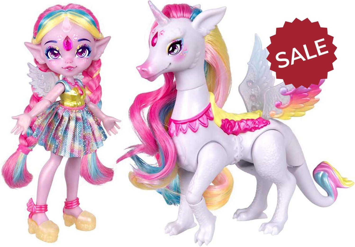 Unia the Pixling, with her crystal gem and beautiful braided hair, stands 16.5cm tall with 7 points of articulation for dynamic play and display possibilites. This enchanting duo is ready for magical play and endless adventures in the Shimmerverse!