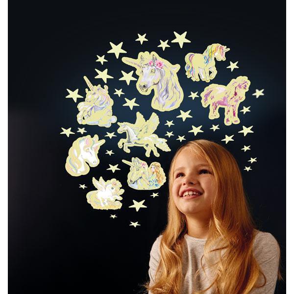 Go on an enchanted adventure with these self-adhesive glow unicorns and stars. Decorate your room and accessorise your stuff with magical glow-in-the-dark designs. Just expose the stickers to a light source for a few minutes, turn off the light and watch them glow. Endless fun!