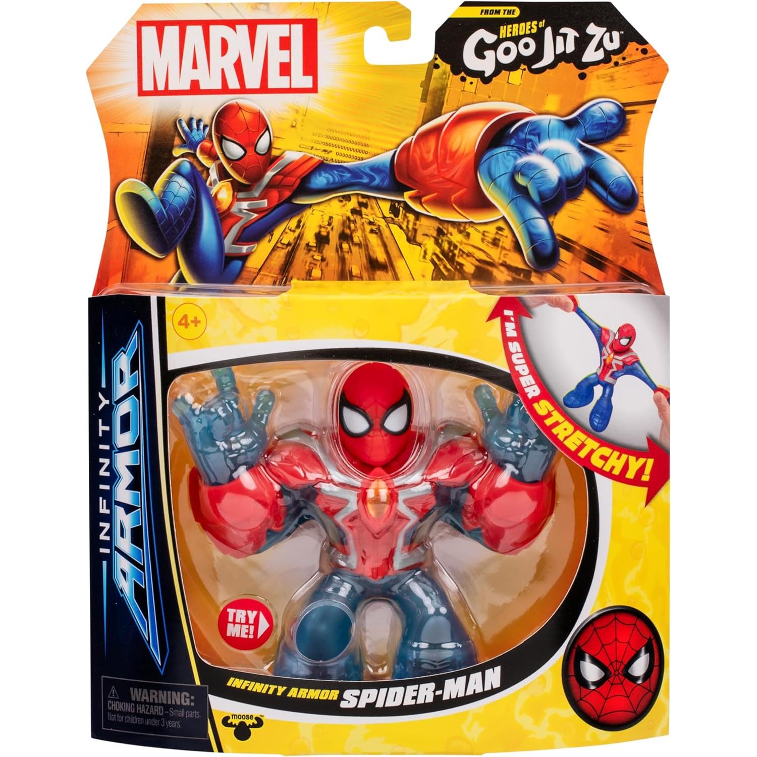 Introducing Heroes of Goo Jit Zu Marvel Infinity Armour Hero Pack Spider-Man! Marvel Super Heroes and the Heroes of Goo Jit Zu have combined forces again to bring you the ultimate armoured, stretchiest Super Heroes ever. Collect them all (each sold separately).