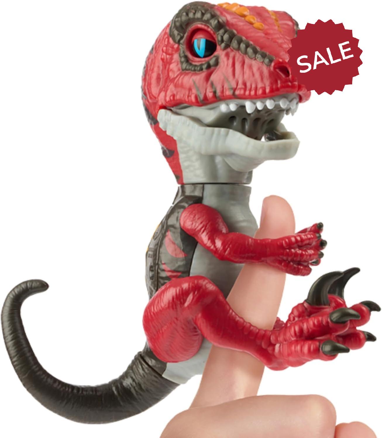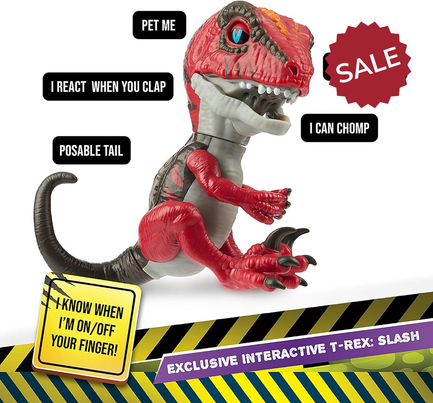 • Get close if you DARE! This fierce fingertip Velociraptor – with extra big claws – is totally interactive. Slash’s wrath makes it see red!