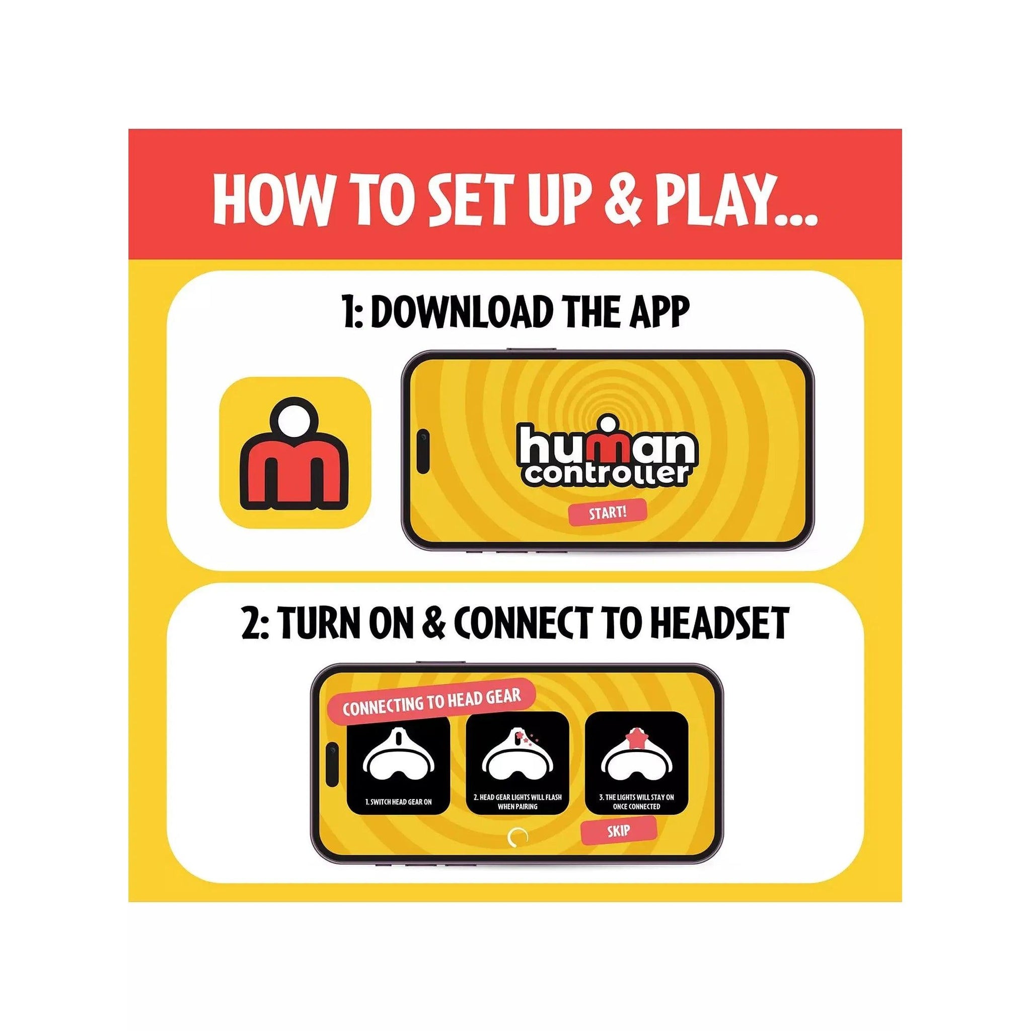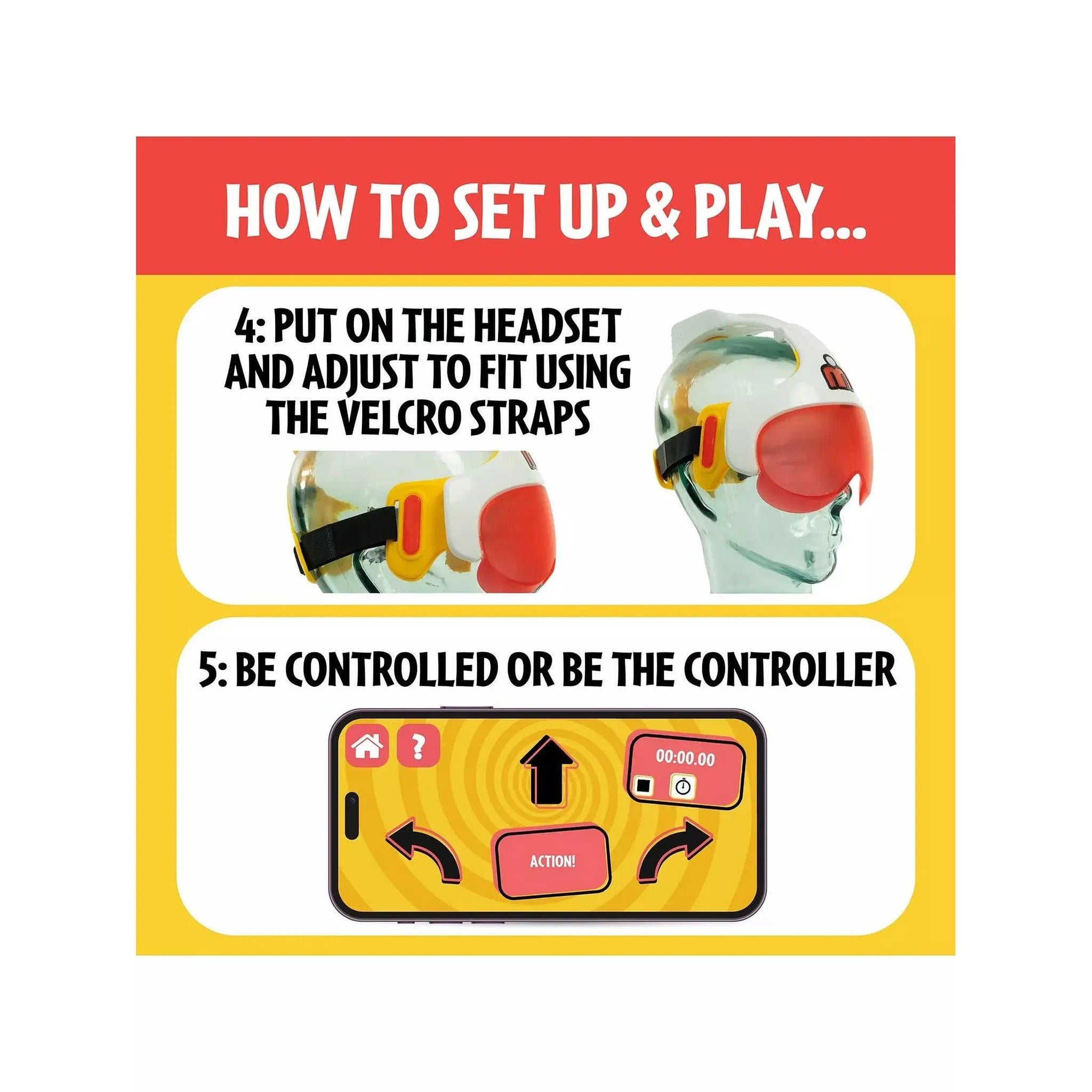 Get ready to take control with the TOMY Human Controller Game! This outrageous interactive party game lets one player become the "Human" while another becomes the "Controller." The Human wears a vibrating headset and a blindfold, receiving silent instructions via directional buzzes - left, right, forward, or back.