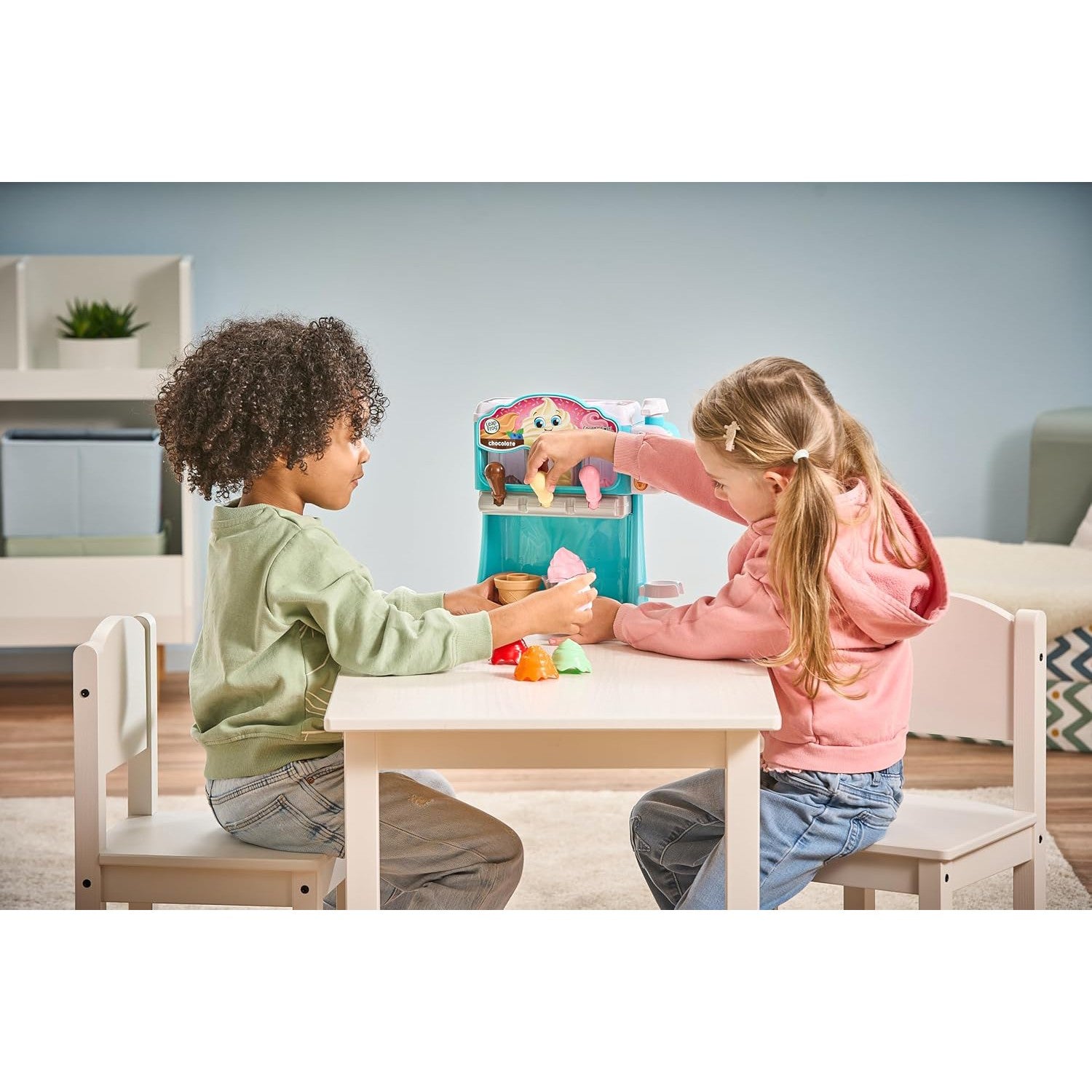 Give ice cream a whirl with the Count & Swirl Ice Cream Maker by LeapFrog. This retro ice cream machine comes bundled with 12 pretend accessories for fantastic role play fun. Press the customer order button to hear pretend customer orders and then pop the 6 ice cream swirls into the top of the machine and get ready to serve. Pull the levers to release the ice cream into the cone or cup and learn ice cream colours and flavours. Toggle the topping switch to select one of four delicious toppings and to top it all off add some syrup – you choose the flavour!
