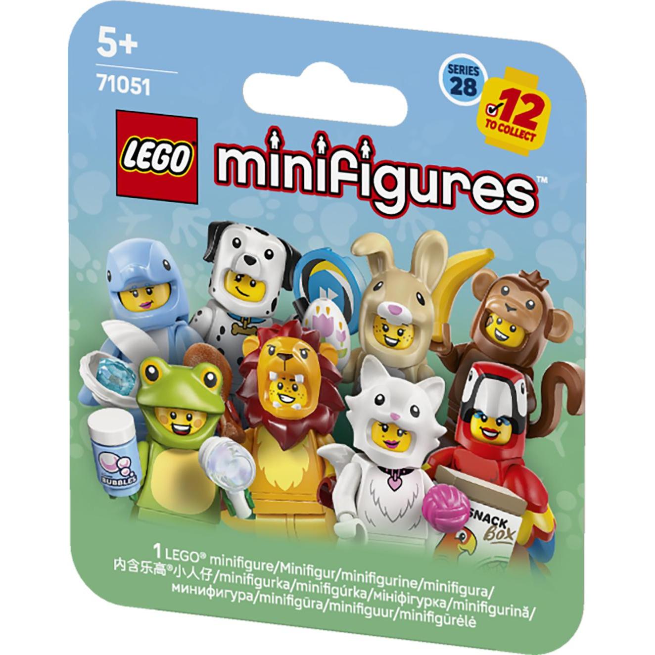 Girls and boys ages 5 and up can play out fun stories with 1 of 12 collectible figures from the LEGO® Minifigures Animal Series 28 (71051) small animal toy mystery boxes. There is 1 surprise LEGO minifigure in each box and a total of 12 characters to collect including toy figures wearing parrot, lion, frog, crocodile, Dalmatian, goldfish, cute bunny, peacock, fluffy cat, koala, dolphin and monkey costumes. Each of the 12 minifigures comes in a sealed mystery box, and all are accompanied by at le ast 1 accessory. These detailed cute animal toys can be added to an existing collection, proudly displayed or used to create fun-filled stories. This small gift for kids who like animals and nature is a fun treat and inspires great storytelling and countless hours of playtime on their own or with friends.