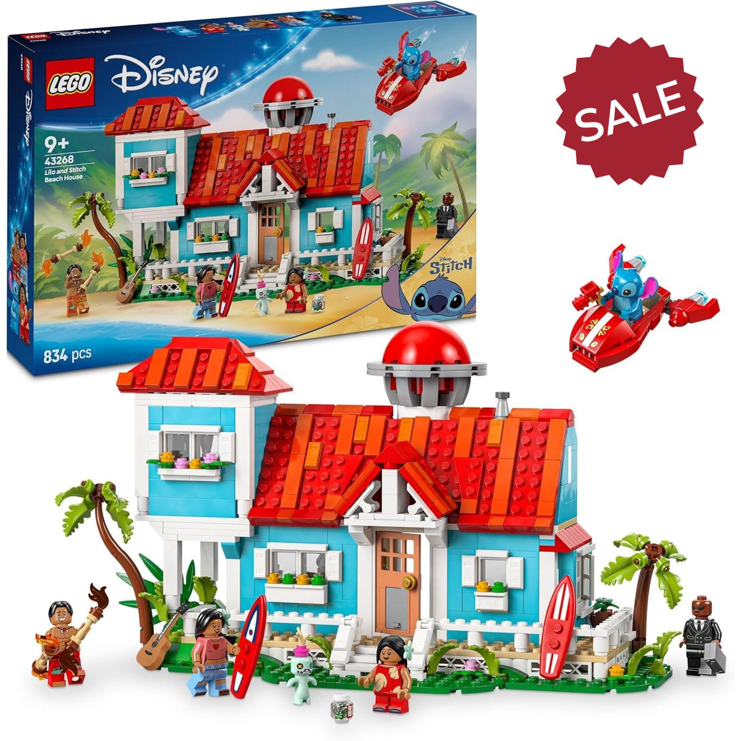- Dimensions – The beach house from the Disney hit Lilo & Stitch in this 834-piece buildable LEGO® ǀ Disney set measures over 7 in. (17 cm) high, 13 in. (35 cm) wide and 5.5 in. (14 cm) deep