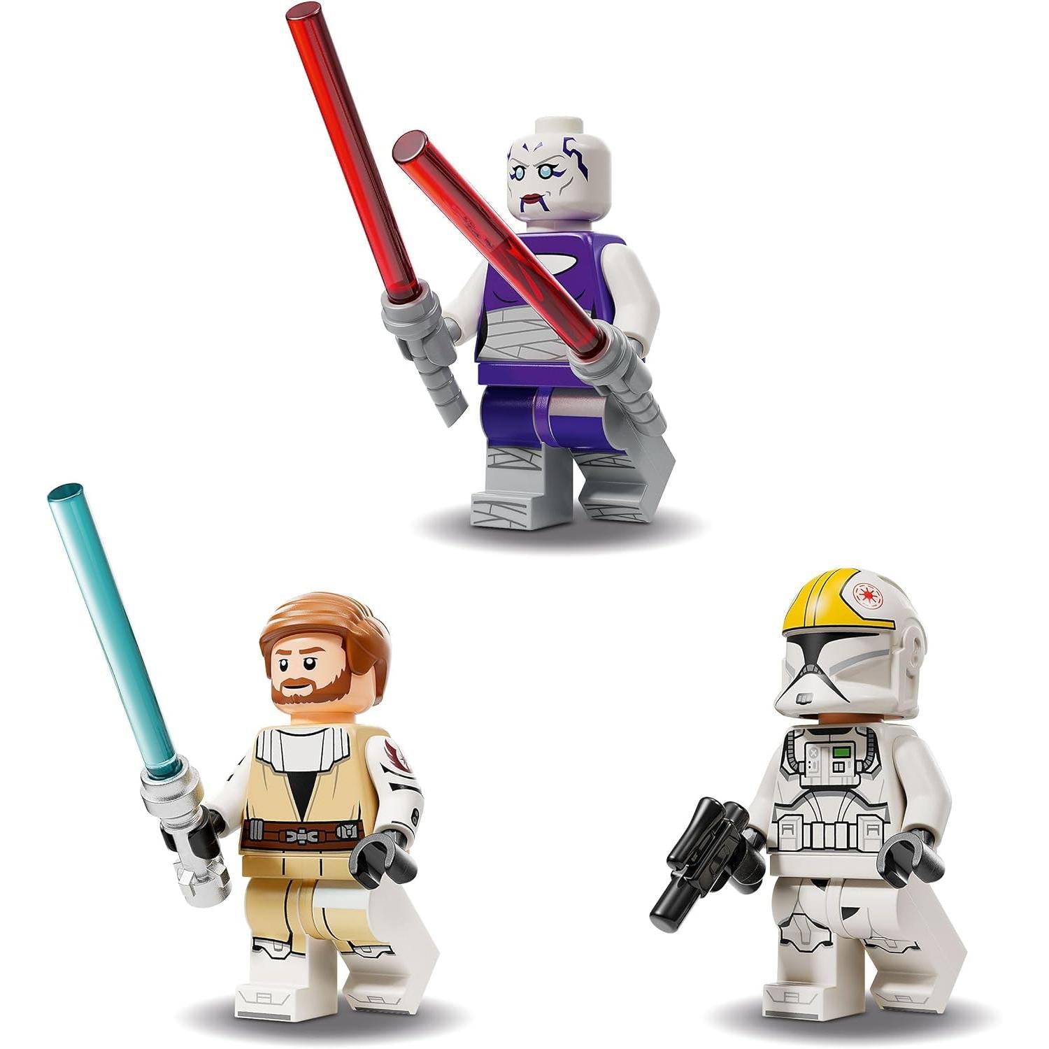 The buildable vehicle playset features 3 LEGO Star Wars minifigures, including Asajj Ventress with 2 red Lightsabers™ with special curved hilts and General Obi-Wan Kenobi with a blue Lightsaber™ for action-packed duels.