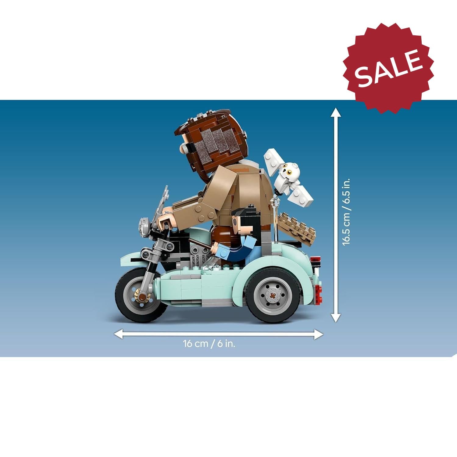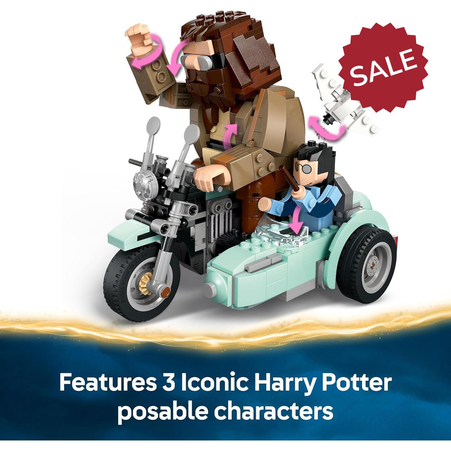 - 3 brick-built LEGO® Harry Potter™ characters – The model features built-in, posable Harry Potter, Hedwig™ and Rubeus Hagrid™ toy figures riding on Hagrid’s flying motorbike and sidecar