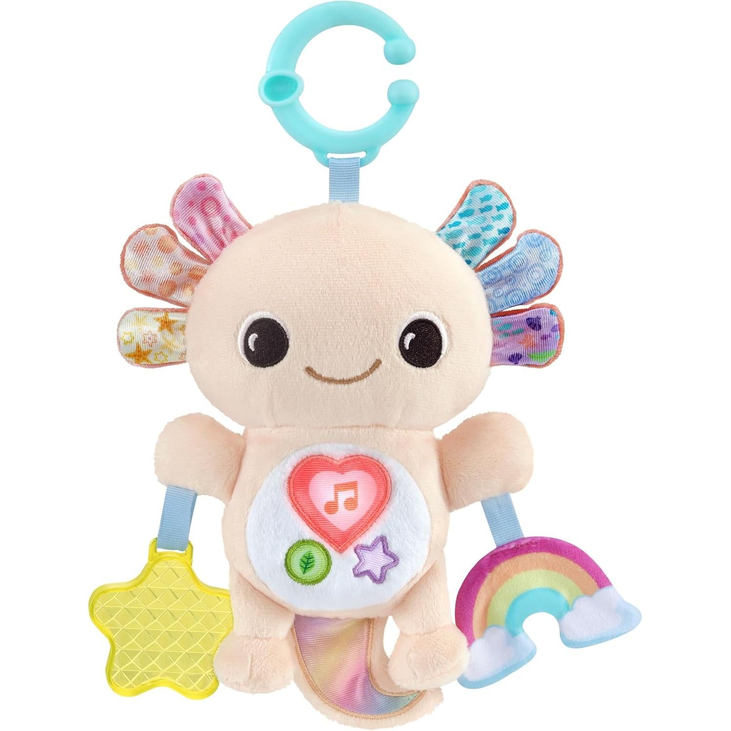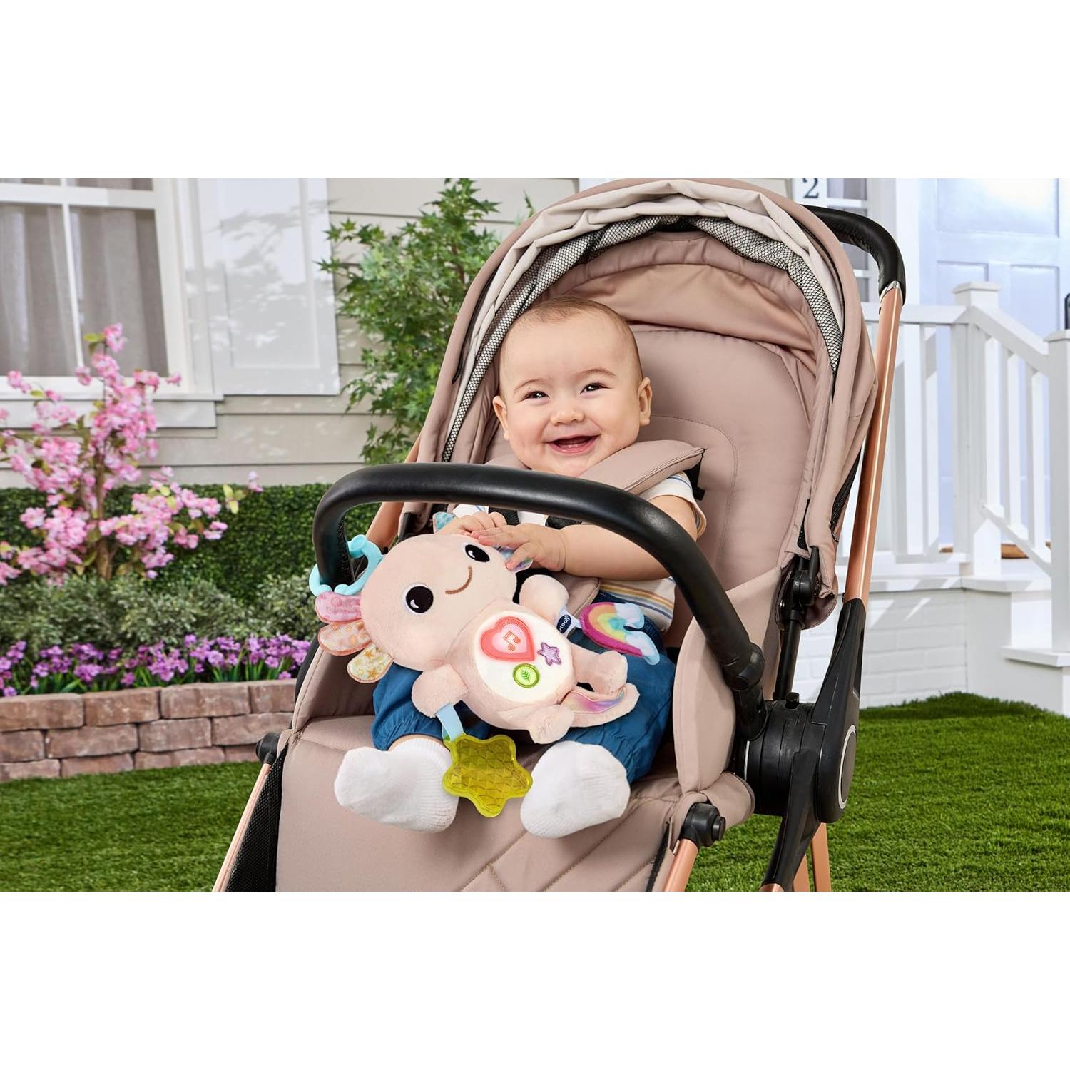 The sensory VTech Baby Rainbow Lights Axolotl will light up baby's day, with 3 sing-along songs, 15 melodies, and fun sounds and textures to explore! Press the 3 soft buttons on Axolotl's tummy to hear playful phrases, nature sounds and catchy music, or discover sensory details with unique textures for even more fun!