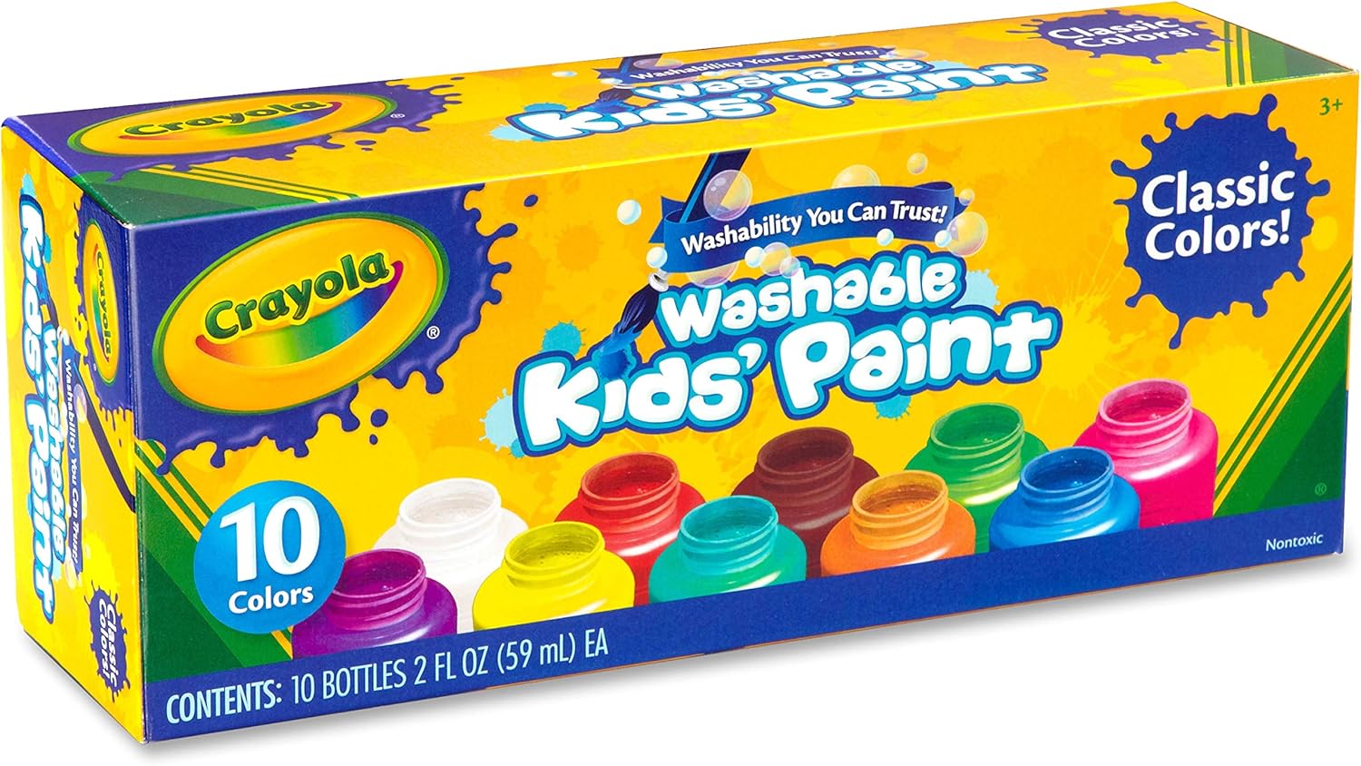 - 10 bright colours of ready to use, washable Crayola paints in classic colours