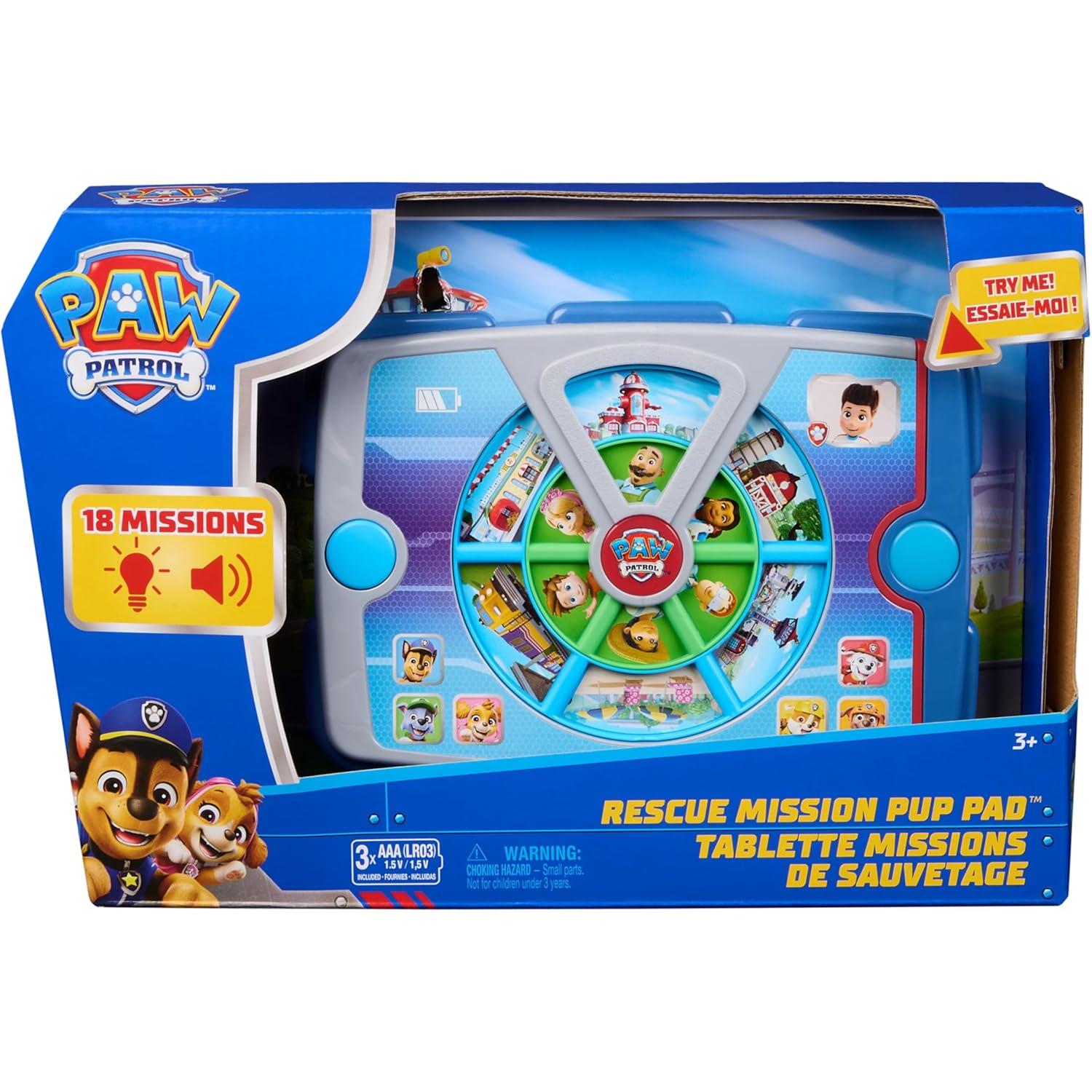 Create thrilling PAW Patrol adventures with the Rescue Mission Pup Pad! This fun-filled electronic toy tablet is designed to inspire creativity and imagination, with its mission and pup selector. Just turn the blue dial to choose the mission location, and the green dial to pick the citizen in need, then push the pup button to hear your favorite characters brought to life.