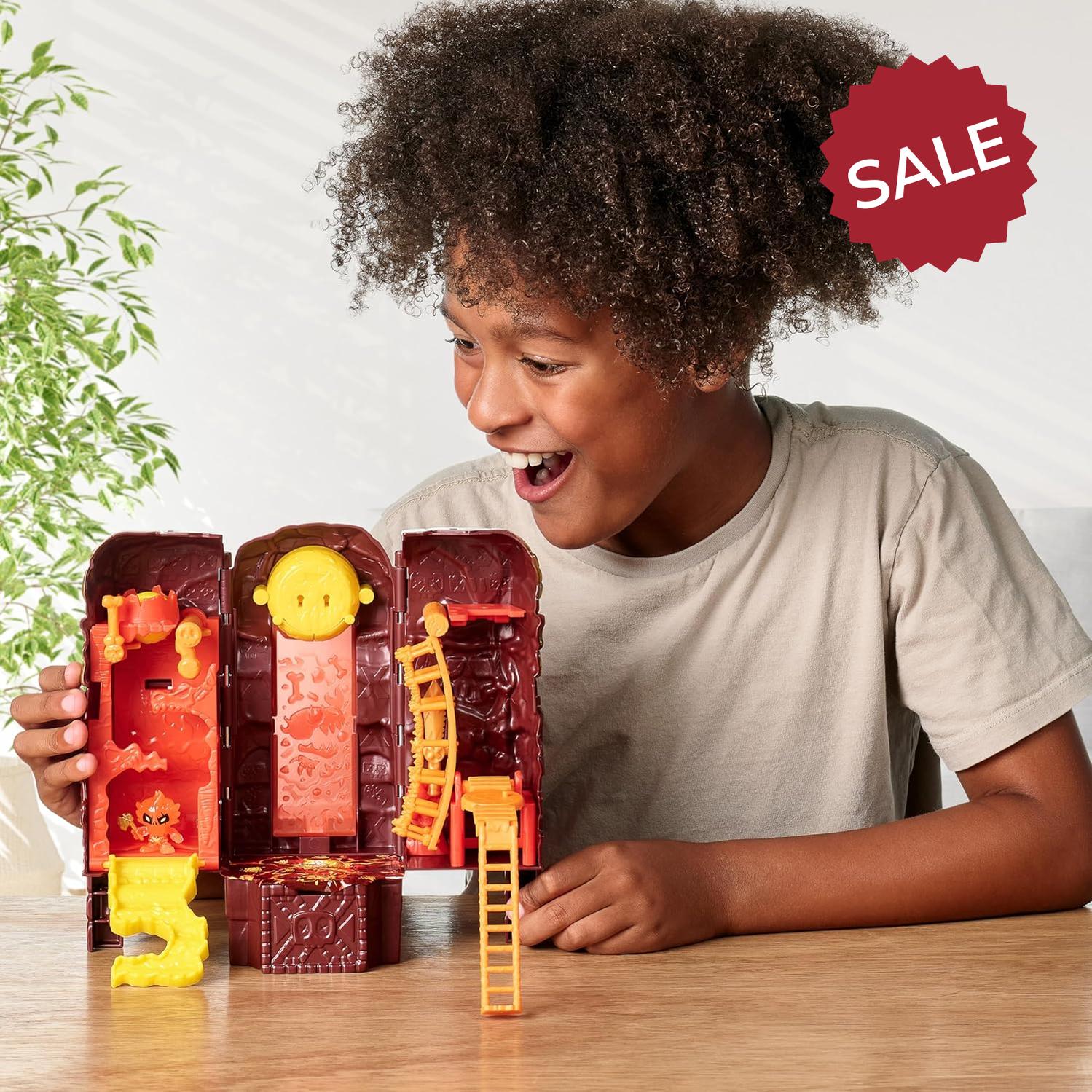 - Throughout their journey of the Lava Tower, kids will discover 2 Micro Sized Figures, reveal the temples hidden secrets whilst dodging its traps in the hunt for Real Gold Dipped Treasure!