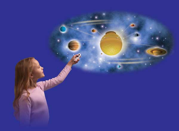 With My Very Own Solar System from Brainstorm Toys, you can explore the wonders of the universe from the comfort of your own room! This amazing remote controlled, motorised mobile has eight detailed, colour, planets that orbit the full sun. Simply assemble the planets onto the three independent orbit mechanisms on the sun and mount to the ceiling with the included fixings. Once mounted onto the ceiling the solar system is 85cm diameter at it’s widest point.