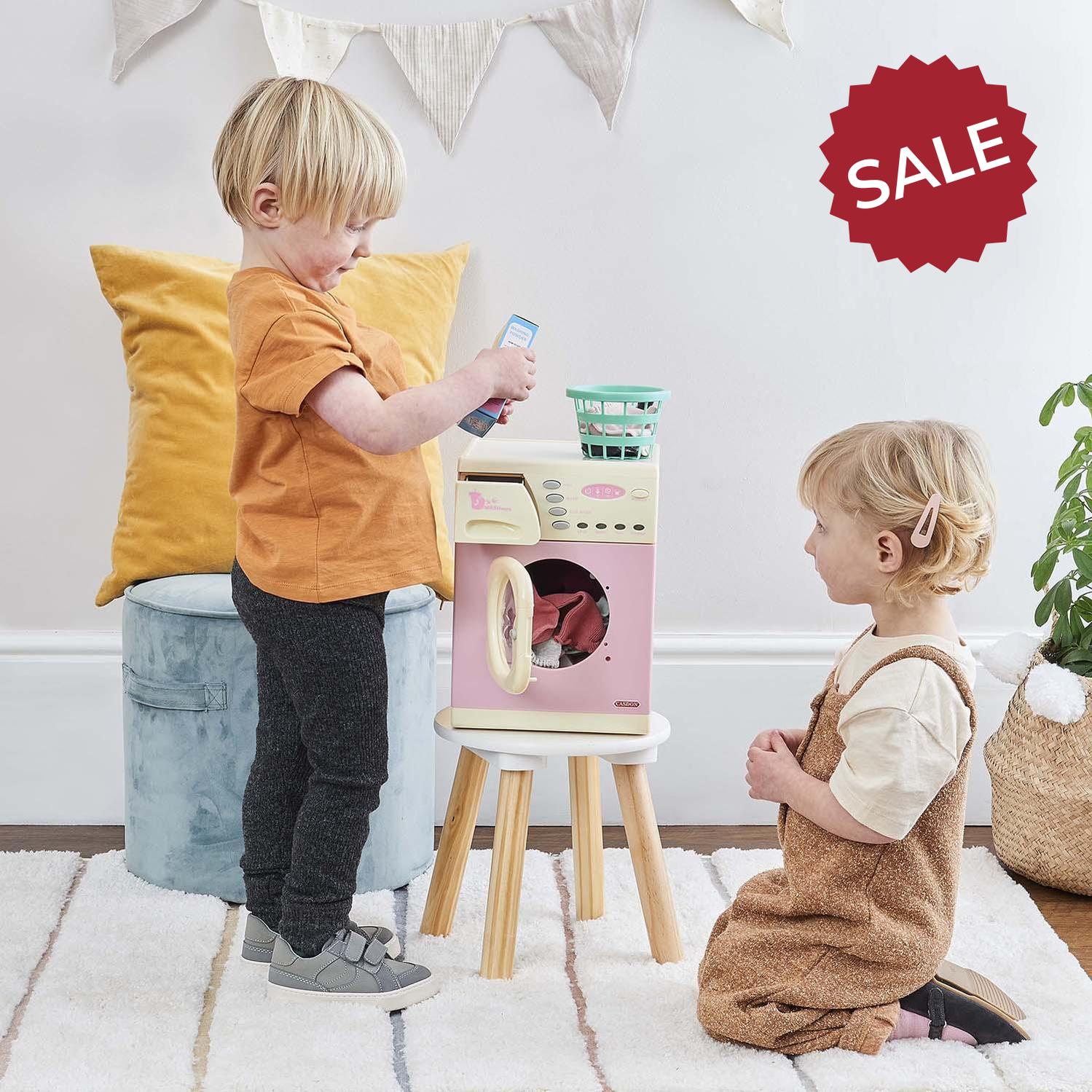 For little ones who love to help at home, this miniature electronic washing machine has just the ticket Complete with realistic sounds, two spin speeds and a "on" light, as well as a wash basket and detergent box, they will soon be pros at keeping on top of clothes. With enough accessories and features to keep little ones entertained for hours, the Casdon toy washer is ideal for pretend play, spark imagination, and encourage exploration. A great addition to your little one's role play nook, but best of all: its energy efficiency rating is excellent. This miniature electronic washing machine looks just like the real thing, allowing your little ones to take the lead and feel like they are helping with jobs around the house. Whether it's washing clothes between playdates or seeking help from friends, there's plenty of fun! Who knew laundry could be so fun?