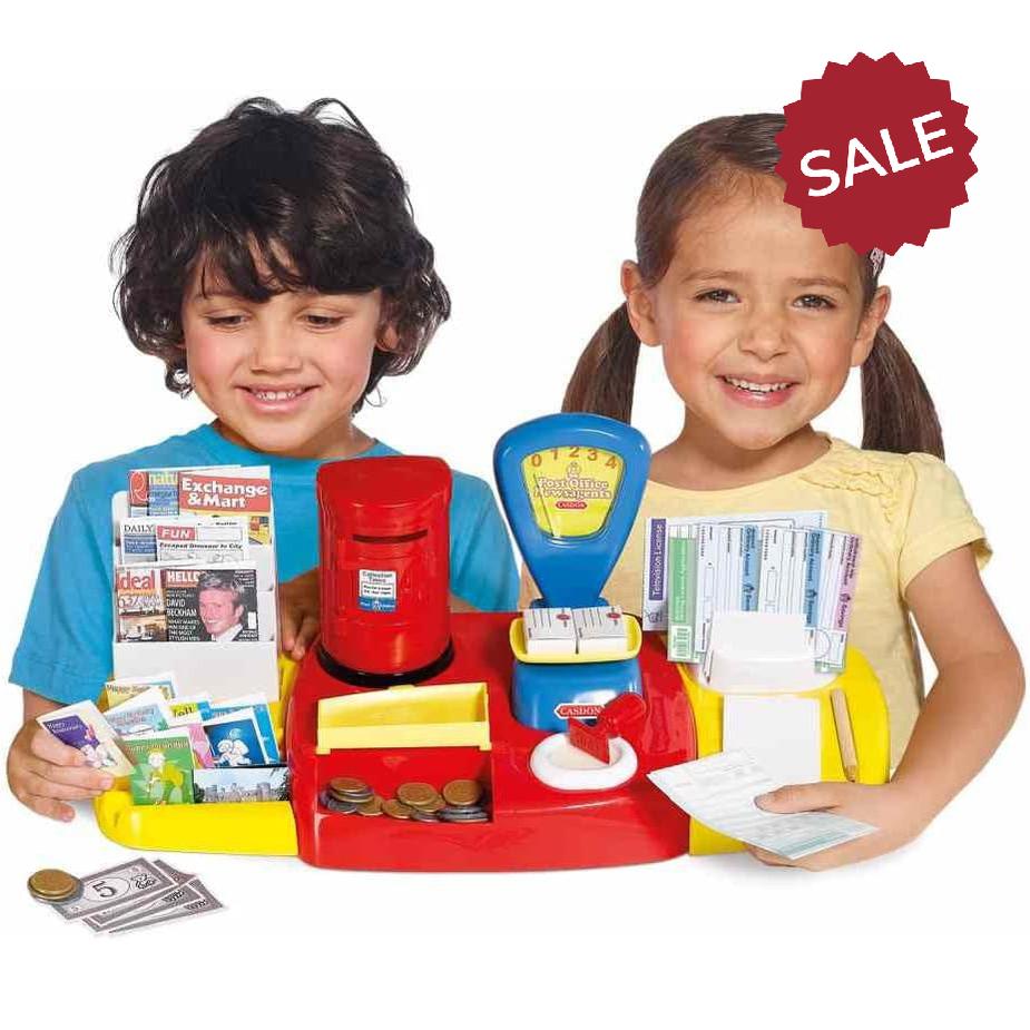 Set Includes; Post box, Weighing scales, cash drawer, stamper, coins and notes, numerous magazines and newspaper titles, envelopes, cards, forms, notepad and pencil. Children will love weighing parcels, stamping envelopes, counting money and filling out forms. These are just some of the activities they can perform with this fun Post Office play set, filled full of post office essentials.