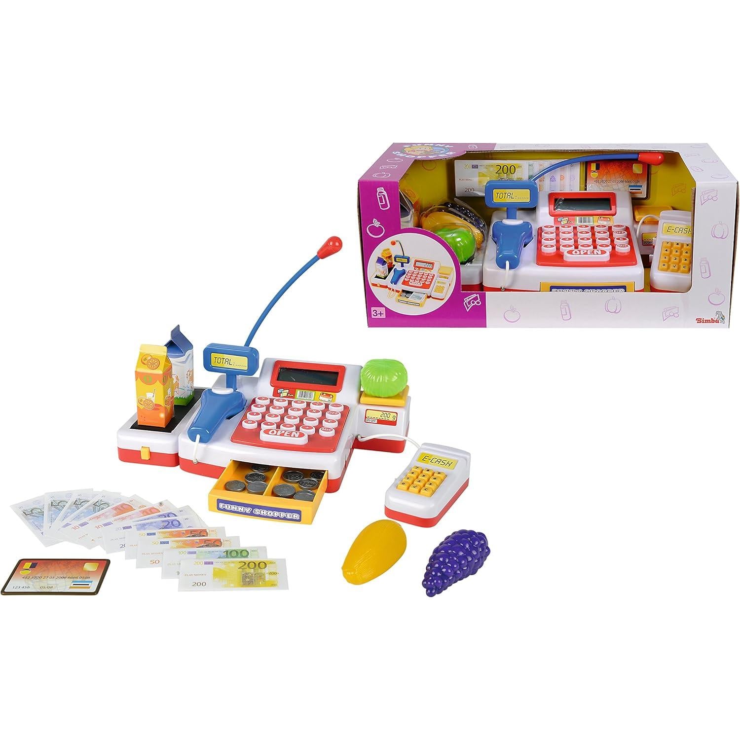 Includes scanner, credit card machine and cash drawer. Also includes play food, money and credit card.