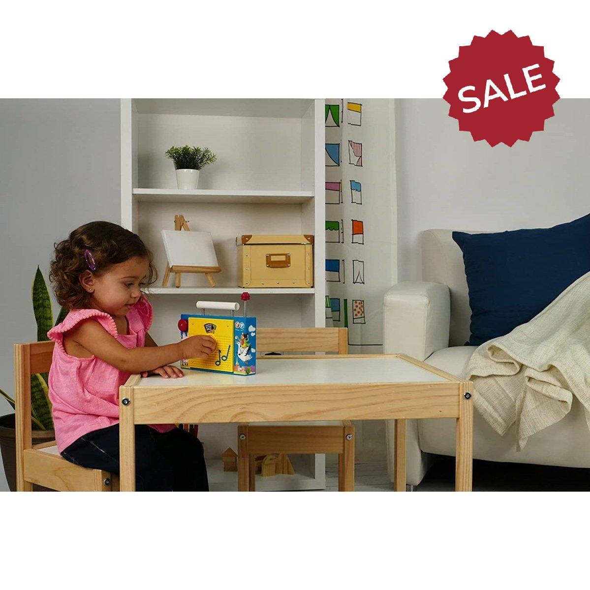 First introduced in 1959, the Fisher Price TV Radio has delighted children for generations. Wind the knob to hear the endearing Farmer-in-the-Dell melody while whimsical scenes scroll across the window of the brightly lithographed case with 50's and 60's era graphics.