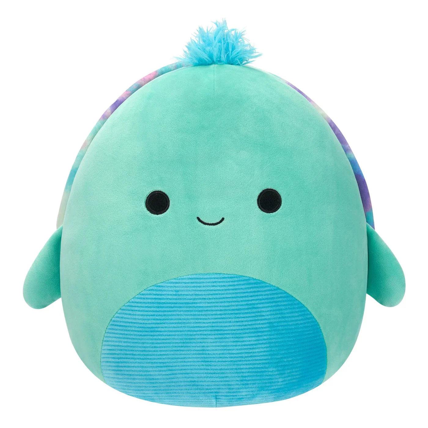 Cascade is a teal turtle. She has a blue striped belly and two flippers (one on each side). She has a simple face with round black eyes and a smile. On her back is a galaxy tie-dye shell.