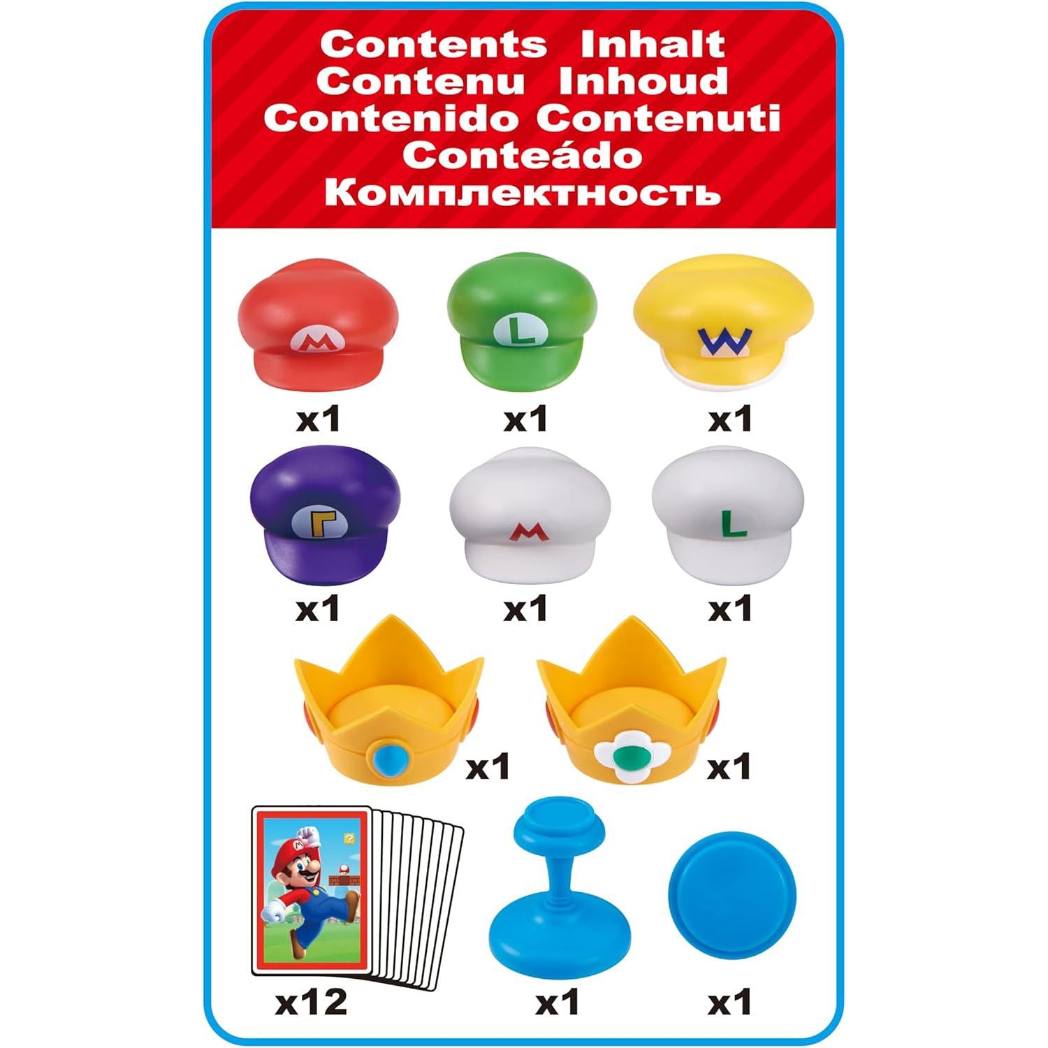 The Super Mario Cap Stacker features the iconic caps and crowns of some of the most well-known characters from the world of Super Mario. Each player selects a card at random and places the corresponding hat on top of the wobbly tower. Players must be extremely careful though because if the caps are not stacked correctly, the whole tower will come crashing down, the hats will be sent flying and that player will lose!