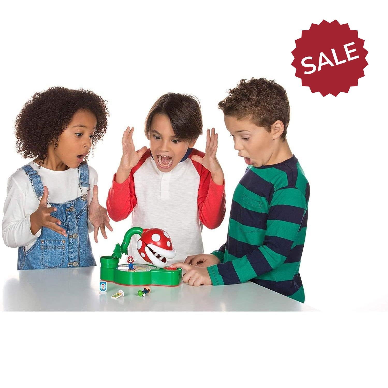 The Piranha Plant is asleep, will you manage to help Super Mario and Luigi reach their destination? Roll the dice and advance on the board. Did you have to press the button? Watch out for the Piranha Plant or it will come after you!