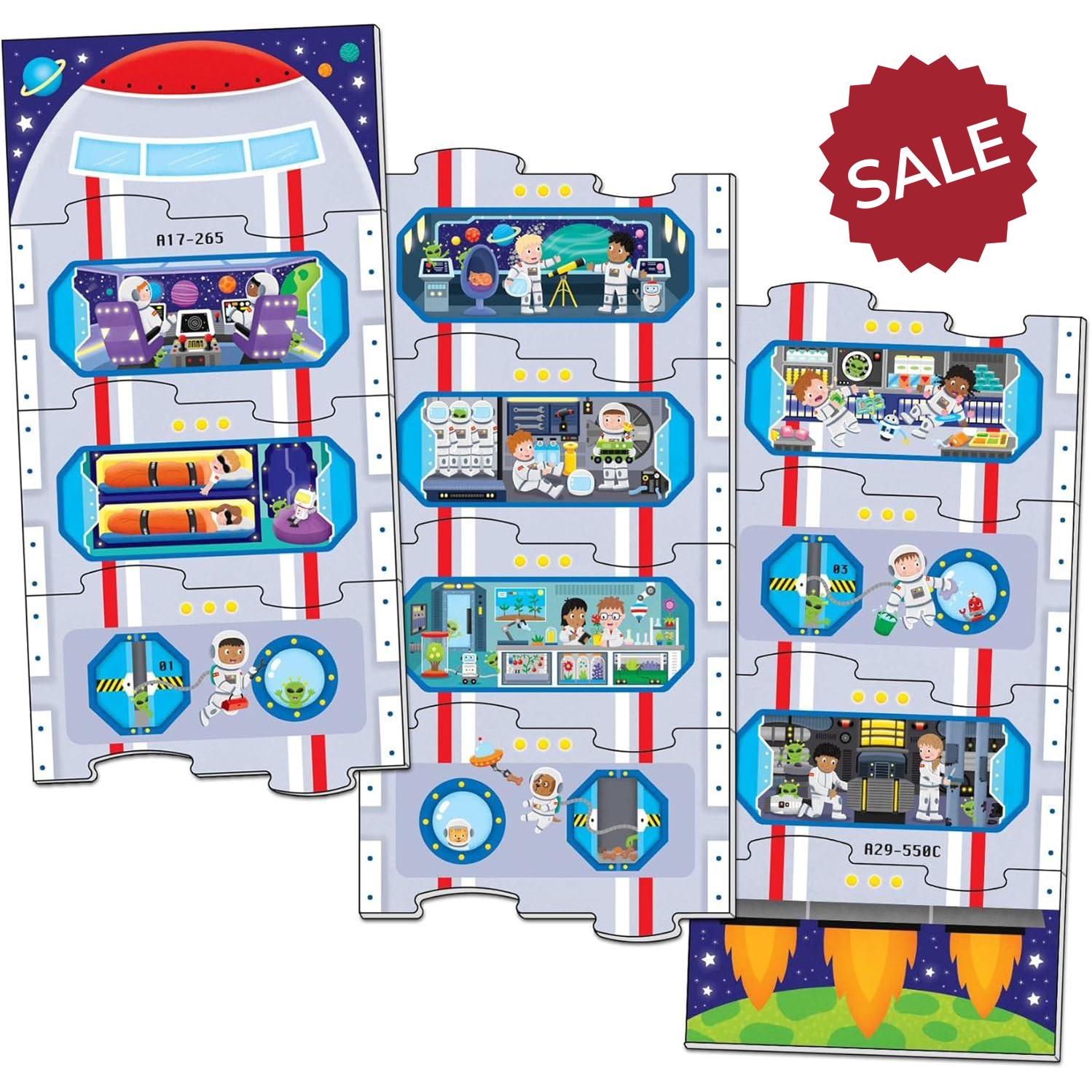 • Ideal Introductory Puzzle: An extra-long 12-piece jigsaw puzzle with 10 special pieces that can be placed in any order to create a new scene every time