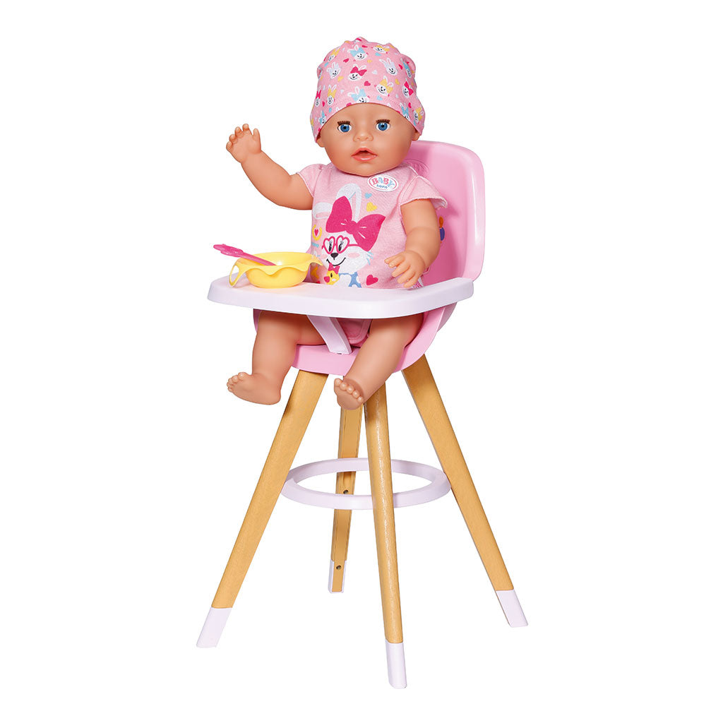 - Each pink BABY born Highchair has a feeding tray and stylish neutral legs.