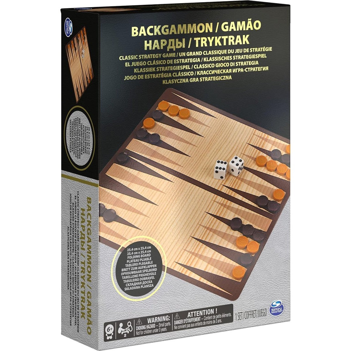 Unfold the case to reveal the classic game of Backgammon. A game of judgment and strategy, Backgammon is simple to learn and challenging to play. Roll the dice in the dice cups and move your markers around the board. Be the first to remove all of your markers from the board to win the game. Easy-to-follow instructions will have you playing quickly. The boards folds for easy storage or fun on the go!