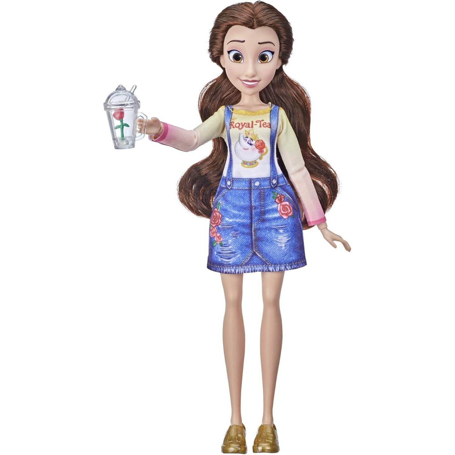 - COMFY SQUAD DOLL WITH CLOTHES! Includes Belle doll in a comfy, casual, modern-day outfit that includes a 1-piece outfit of denim skirt and graphic top.
