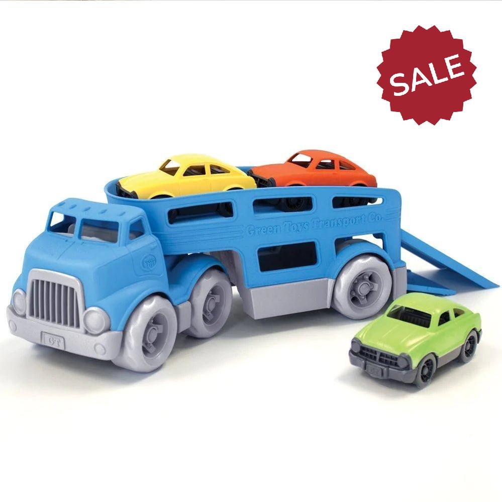 The double-decker Green Toys Car Carrier has two working ramps and space for three Mini Cars. Its smooth, durable construction can endure enthusiastic play sessions with car-mad kids.