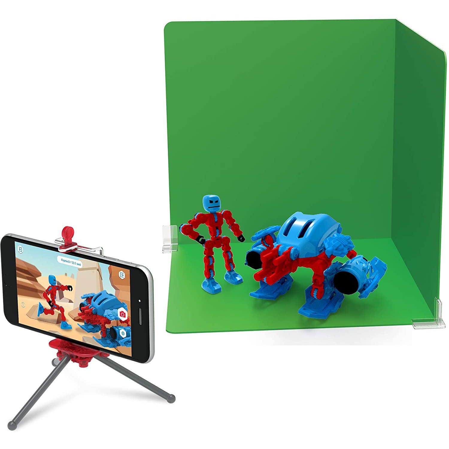 Green/blue screen for stop frame animation – also includes phone tripod