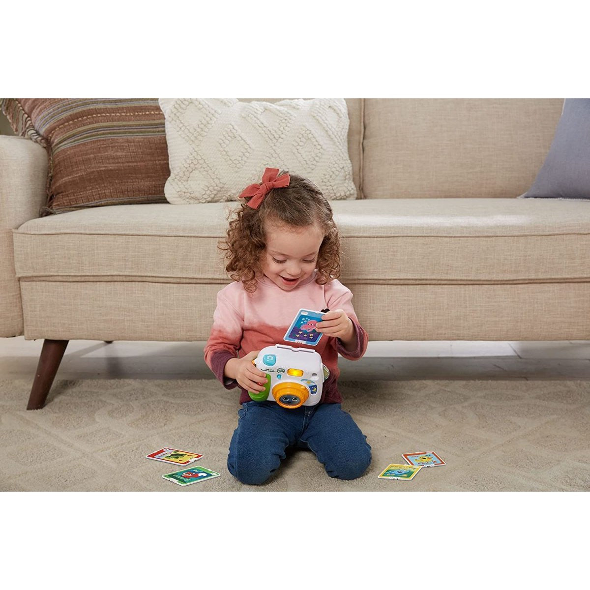 Insert a photo and press the blue button to learn all about animals, numbers, shapes and colours with the five colourful photo cards. To explore another photo, press the red button to eject it for pop up fun! Look through the colour viewfinder to explore four different colours and turn the lens to learn opposites such as night and day. New batteries recommended for regular use.