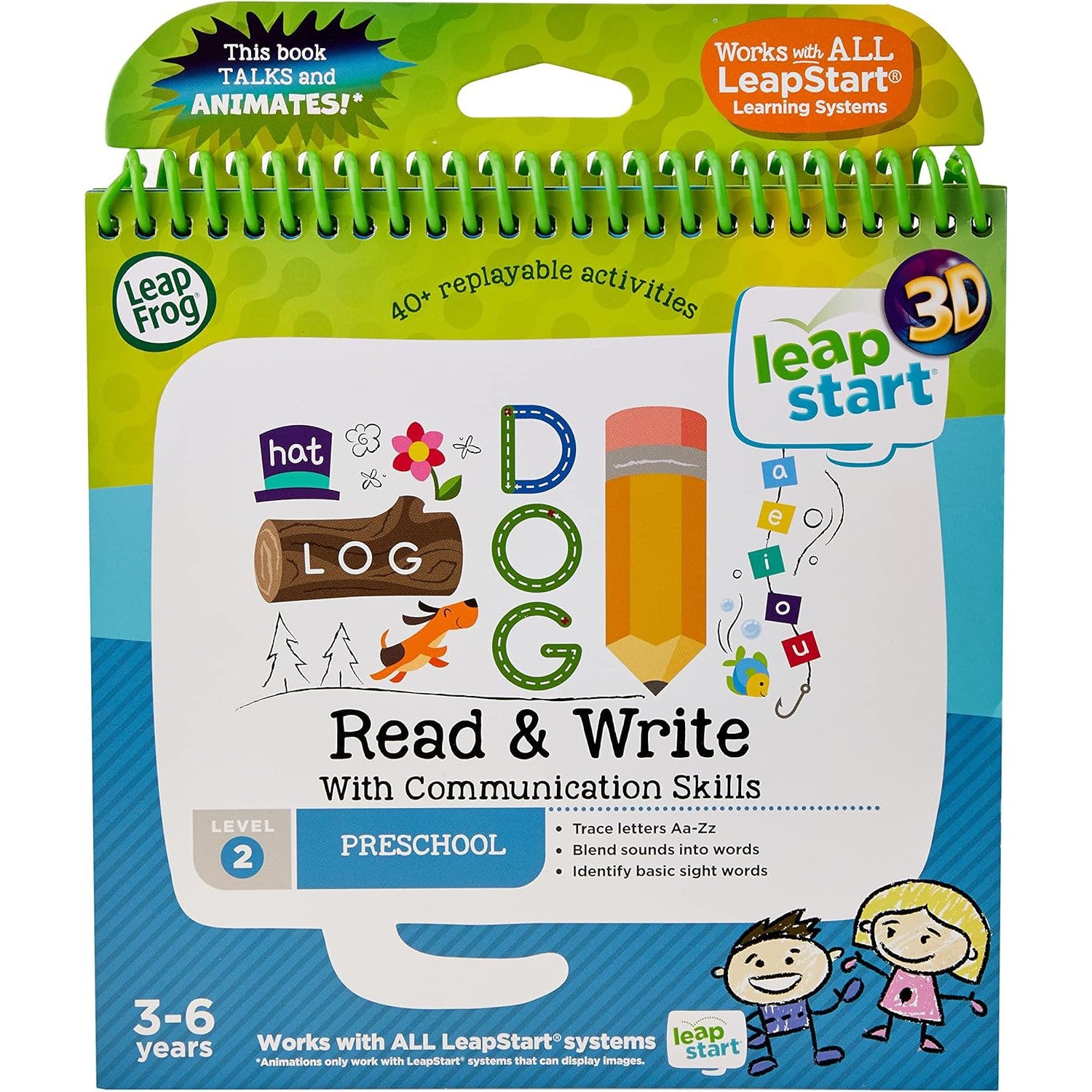 This interactive, activity book talks, sings and comes to life with 30+ replayable activities covering essential Preschool Reading & Writing and Creative Problem Solving skills. Works with all LeapStart™ Systems. Animates with LeapStart™ 3D.