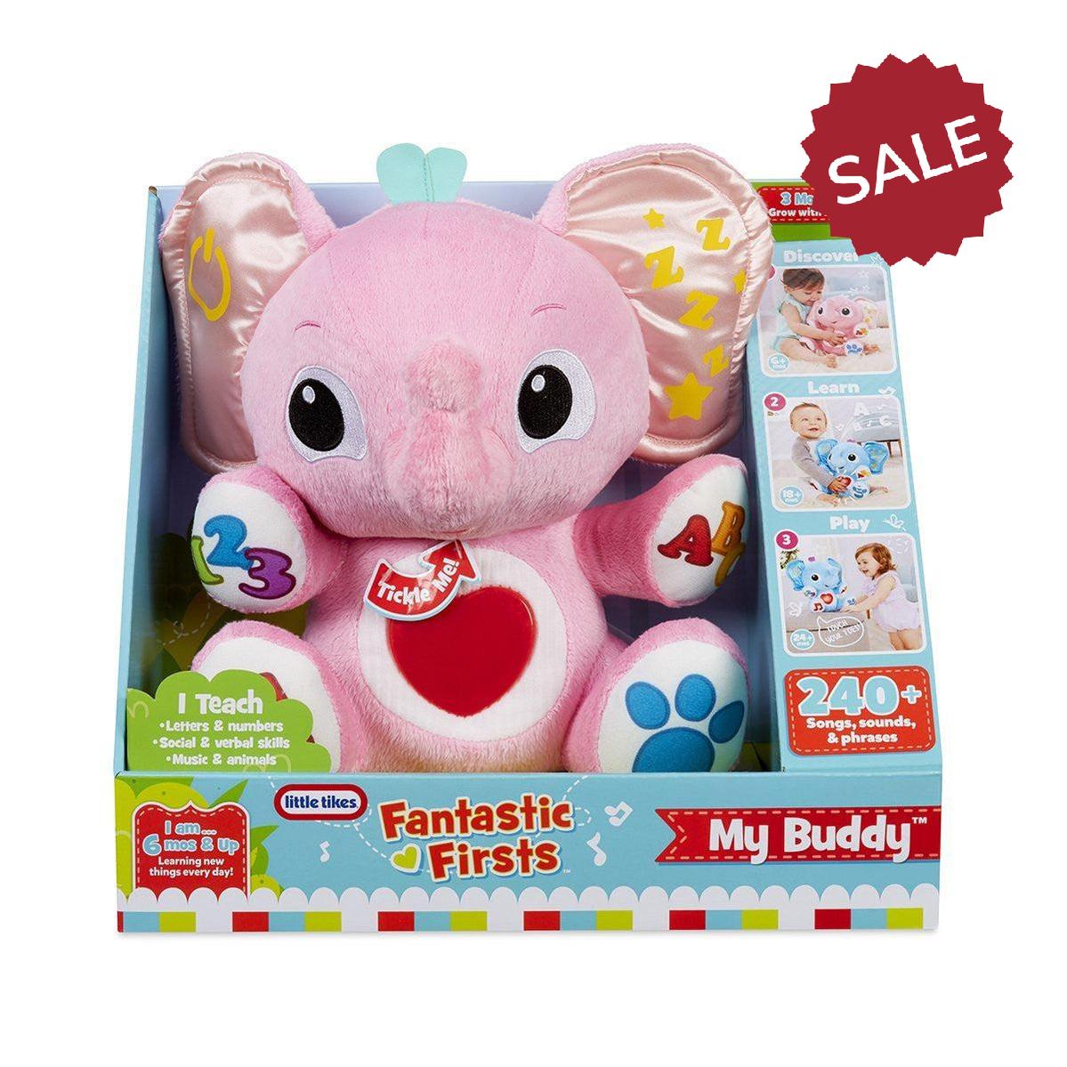 Meet Lalaphant – she gives the best cuddles! The only learning plush to really grow with your child, this cuddly toy is designed to be your little one’s best friend right up until the age of three. Her features evolve in three stages as baby gets older. Expose babies to the textures, cuddles and tickles. Then, as they grow, Lalaphant will teach them about the alphabet, counting, musical instruments and how to follow directions! With more than 200 songs, sounds and phrases, Lalaphant makes a great best friend!