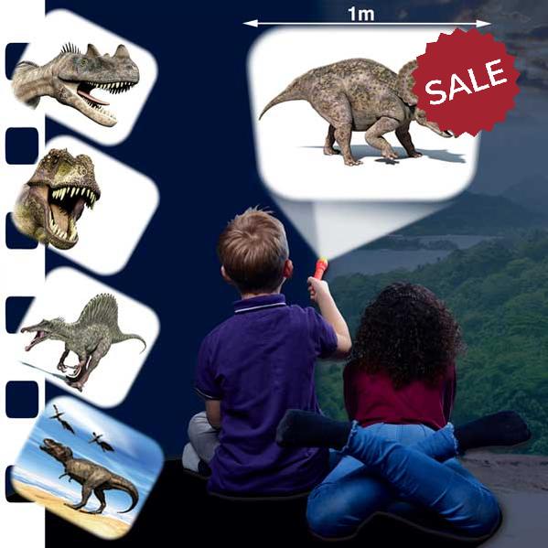 Projects 24 fascinating dinosaur images onto walls and ceilings