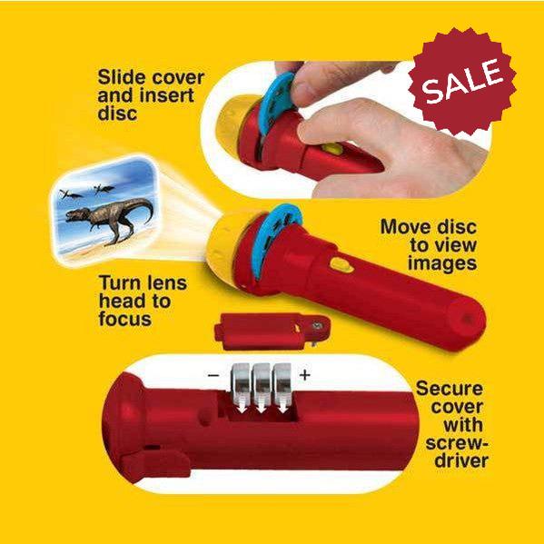 This handy LED torch is also a photo projector, projecting colourful images up to one metre wide onto walls and ceilings. Includes 24 fascinating dinosaur images including T-Rex, Stegosaurus, Triceratops and more. Batteries included.