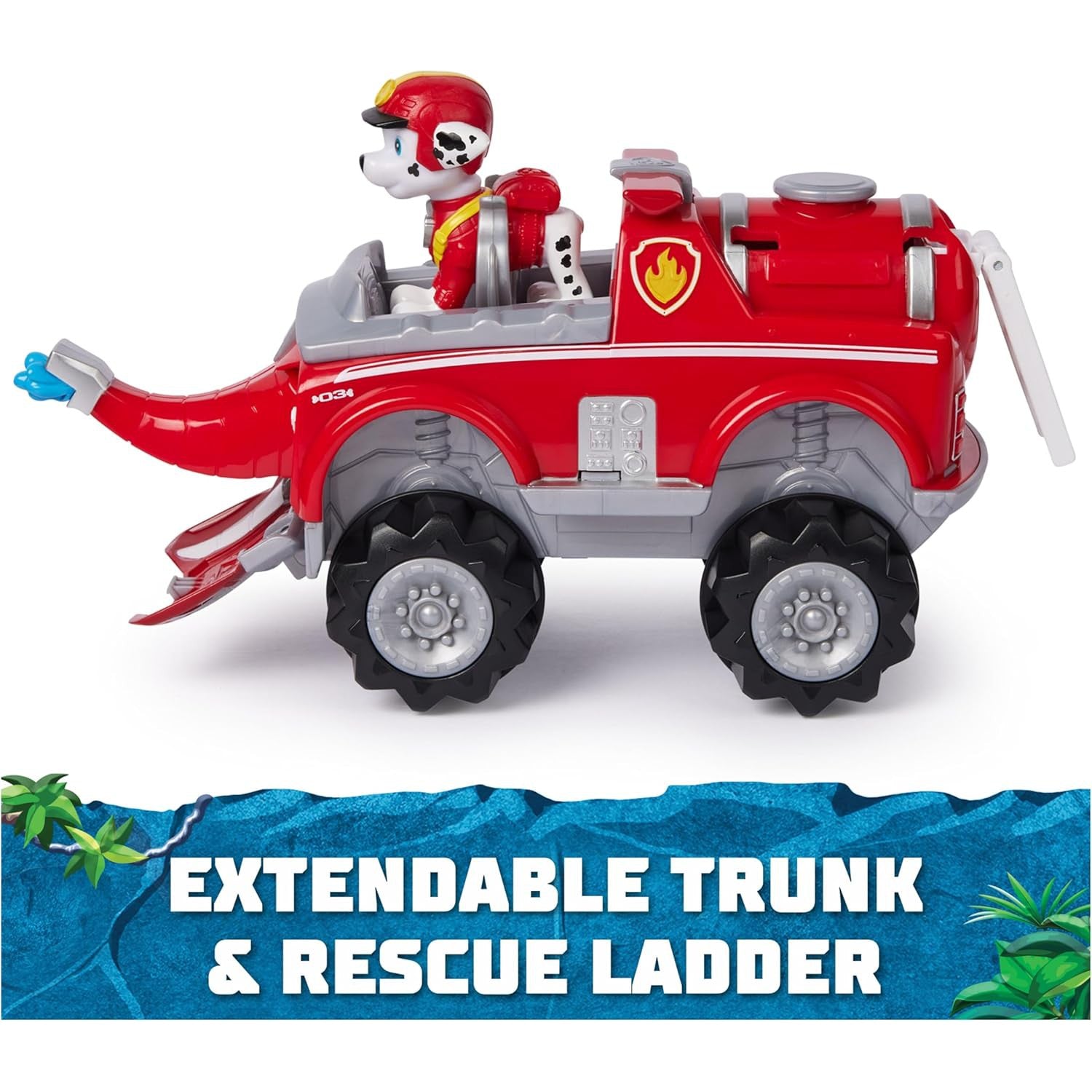 Enjoy endless PAWsome adventures with Marshall and his Jungle Pups Elephant Rescue Vehicle! Marshall’s vehicle features an exciting transformation into rescue mode by pushing down the light bar to reveal his vehicle’s elephant trunk and tusks. Use the elephant trunk to clear away obstacles on the way to your next rescue or extend the ladder for tricky emergencies!