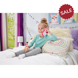 Let’s play and chat with Gabby and her friends while watching animations of the characters on screen. Voice activation lets children chat with Gabby and Pandy Paws for interactive pretend play. Change the ringtone, brightness and more, just like a real phone. Play four meow-mazing games that feature themes from different episodes. Make music with DJ 'Daniel James' Catnip, bake a cake with Cakey Cat and play hopscotch with Pandy Paws. Help MerCat find the correct number of shapes to make magic potions. Hear messages from Gabby about her friends through Meow Mail! Note: This toy phone has reduced volume to adhere to safety regulations for close-to-the-ear toys.